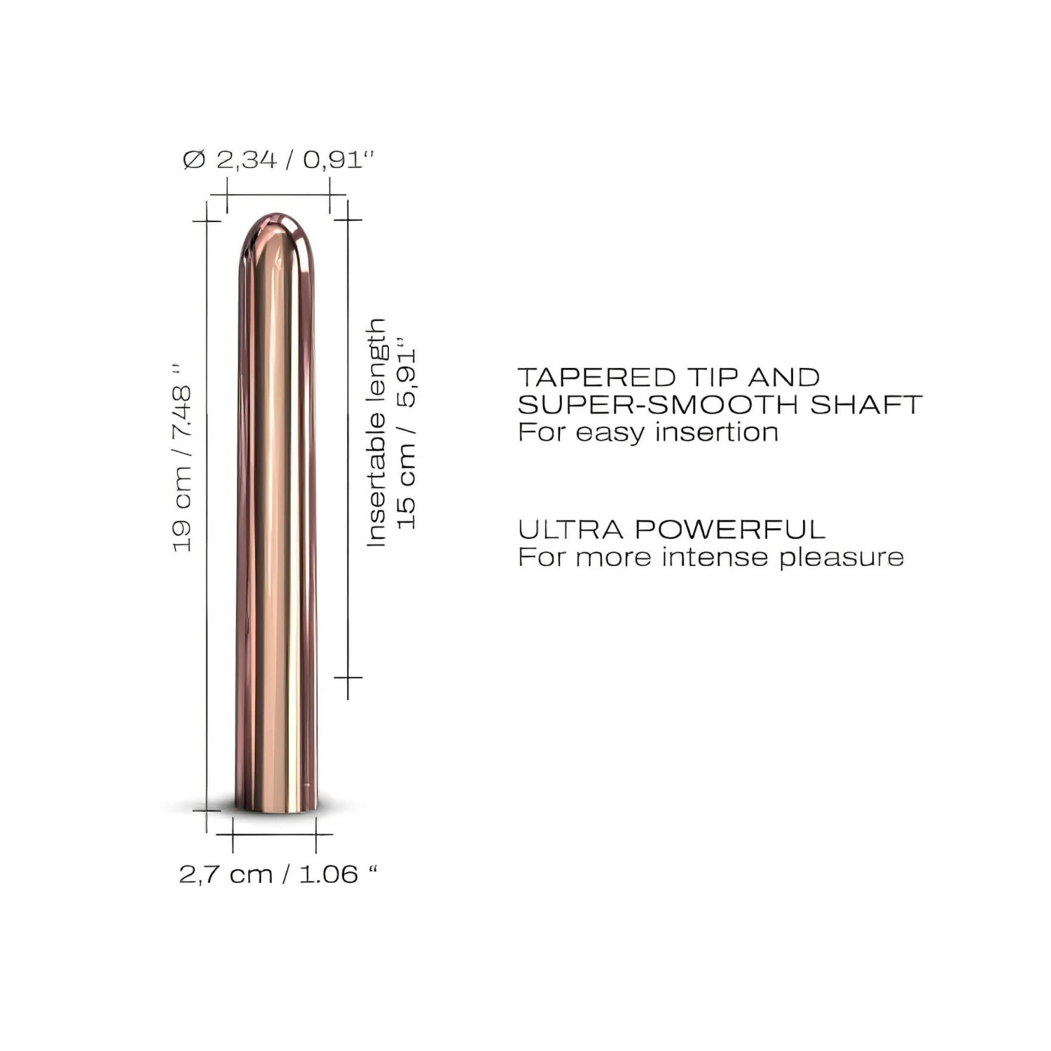 • Fast kropp, høyglanset metallisk design - motstår alle vinkler, kan også brukes som ekstern vibrator, med luksuriøs finish