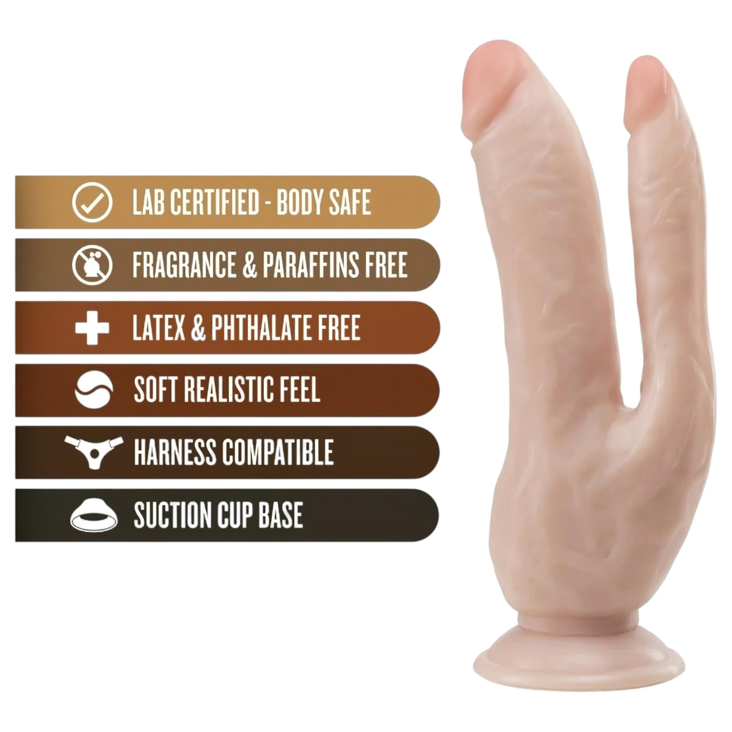 Dr. Skin 8 - dobbel dildo med sugekopp (natur)