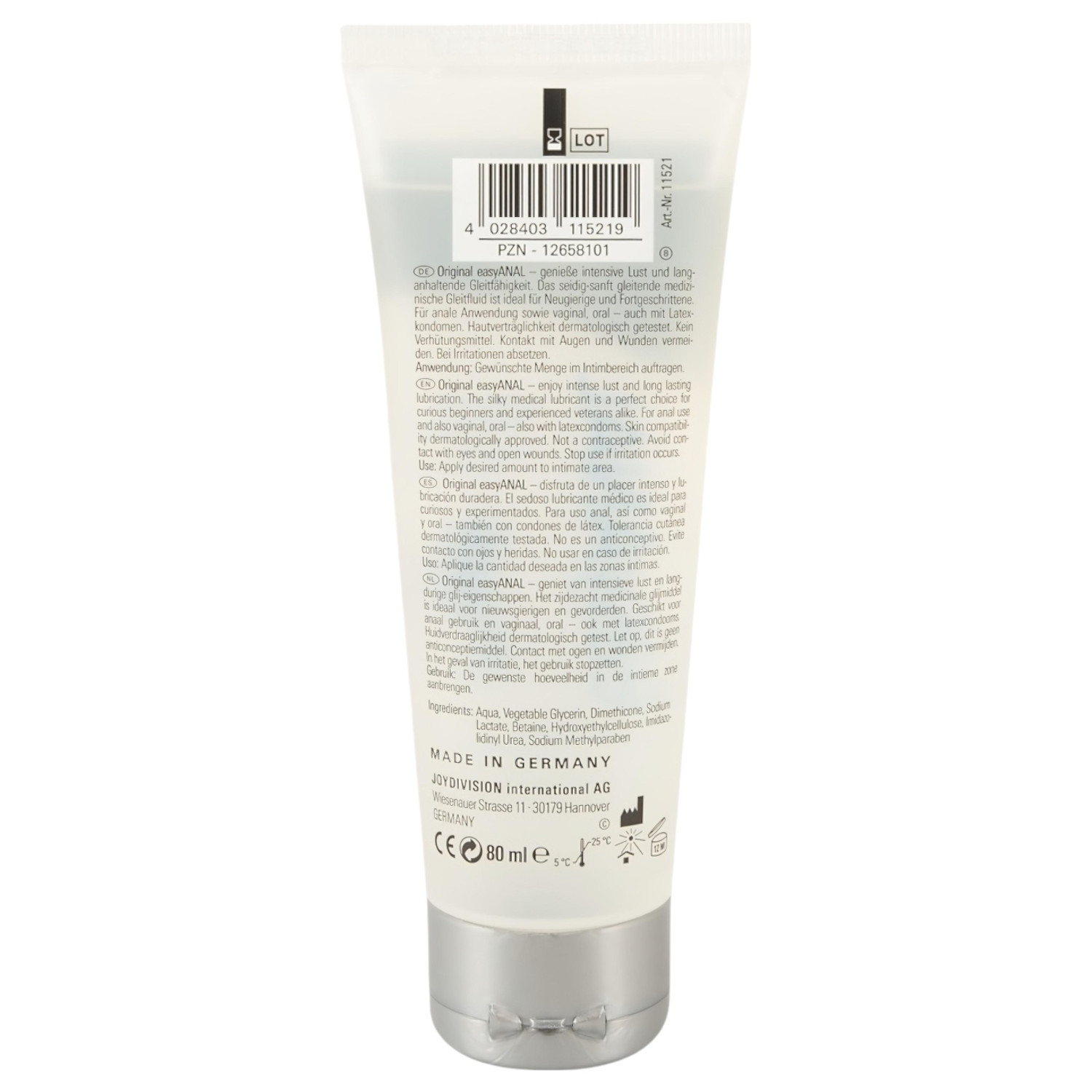 • easyANAL glidekrem: Silkemyk, blandet (glycerin-vann) base, dermatologisk og klinisk testet