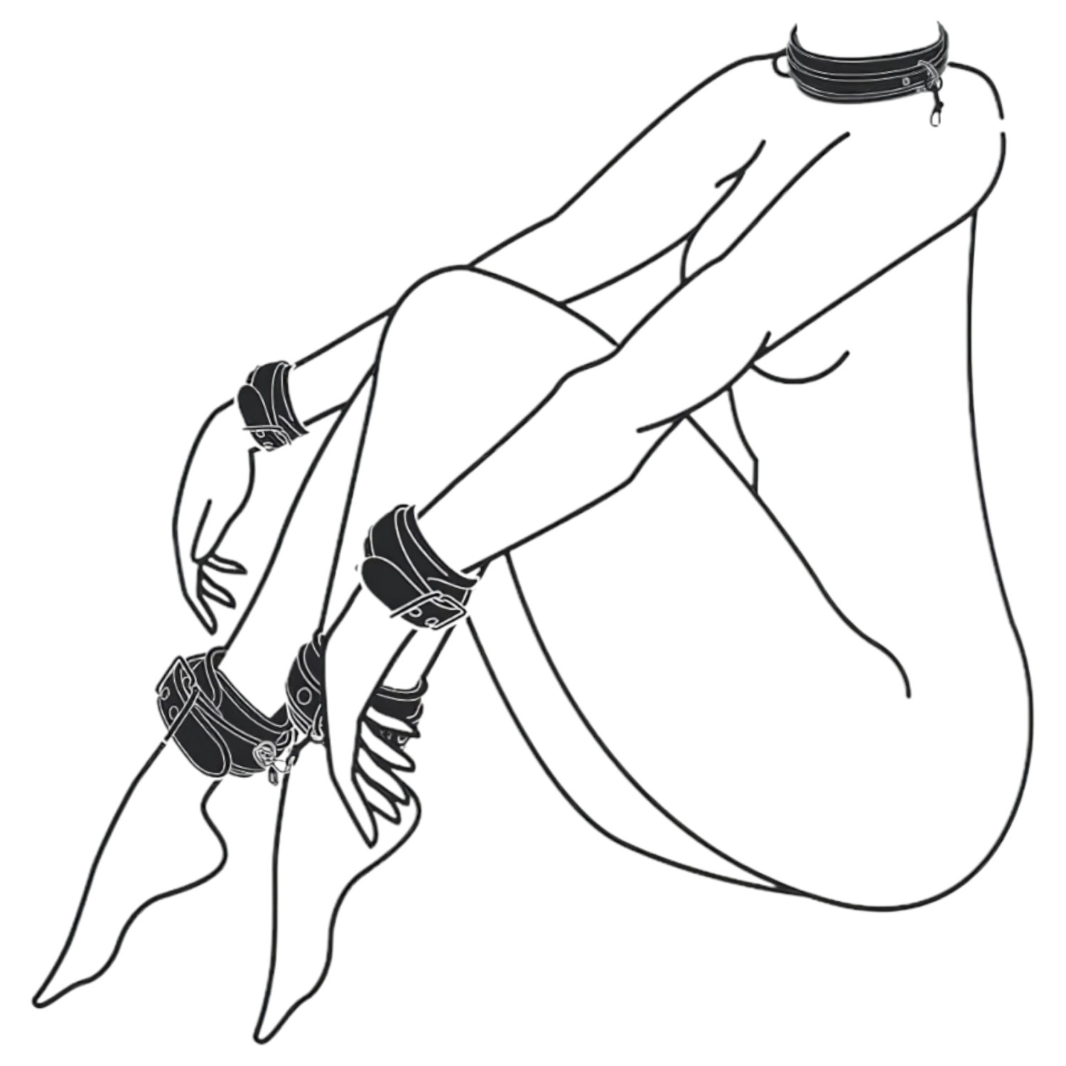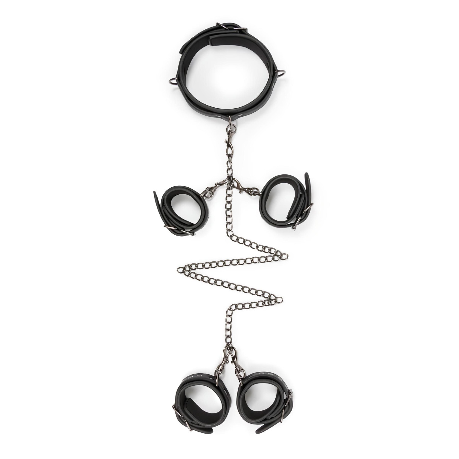 • I pakken finner du hånd- og ankelmanchetter samt et halsbånd, som kan festes sammen med en kjede