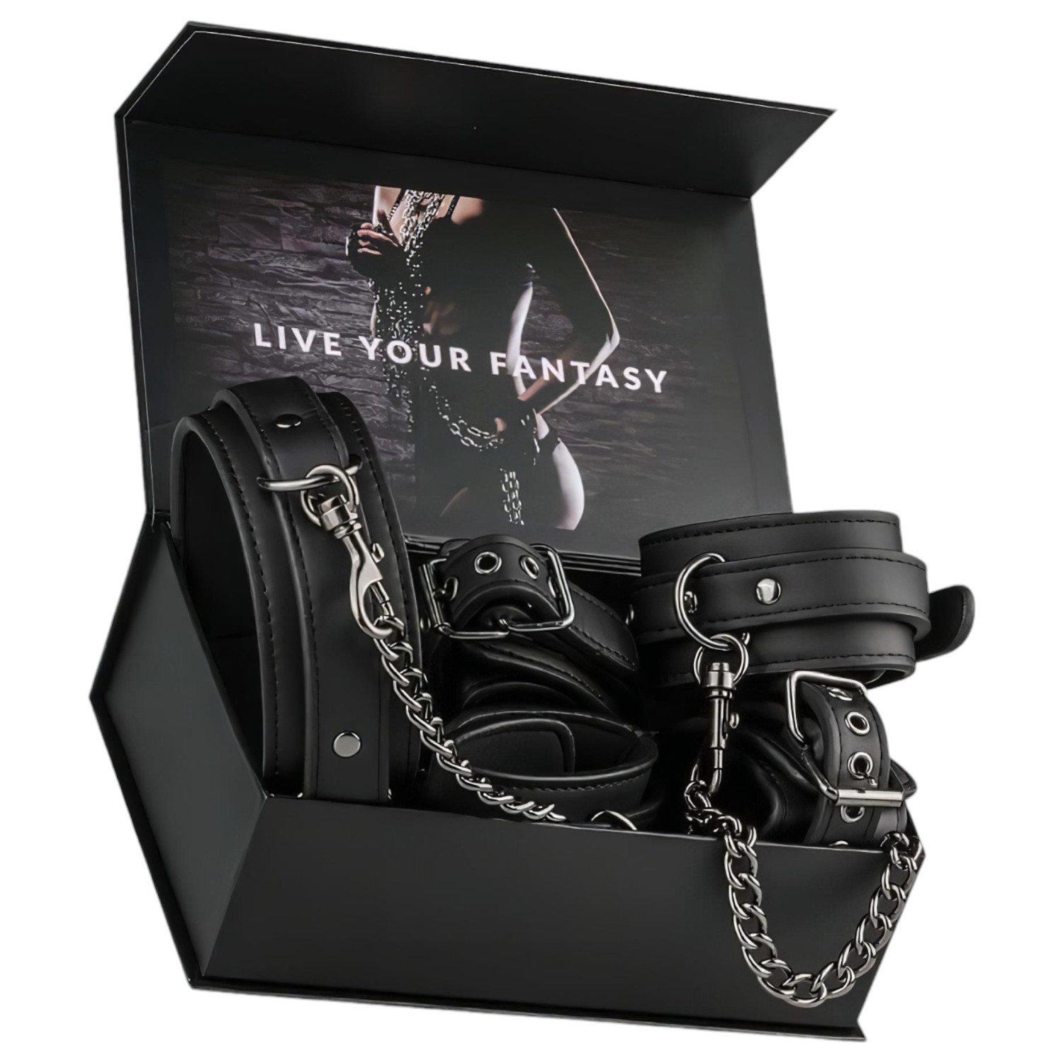 Easytoys - Halsbånd med håndledd- og ankelmansjetter (svart)