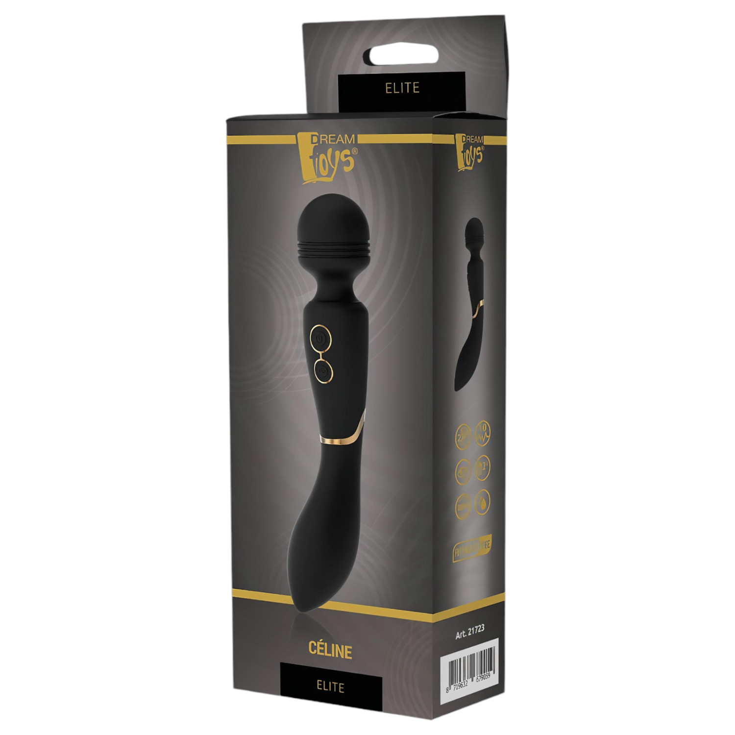 Elites nye fløyelsmyke massasjevibrator med elegante gulldetaljer.