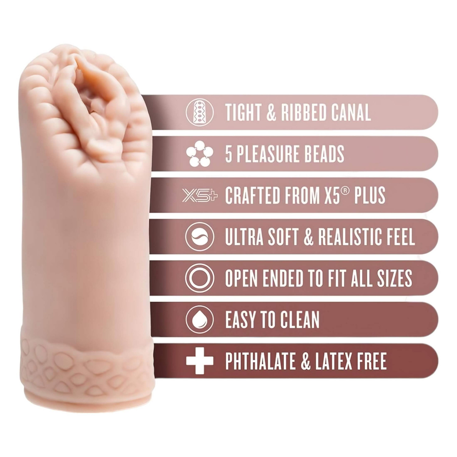 Smør masturbatoren med vannbasert glidemiddel, og nyt den stramme, stimulerende innsiden. Du kan regulere intensiteten av opplevelsen ved å klemme. De medfølgende AI-bildene hjelper til med å sette stemningen.