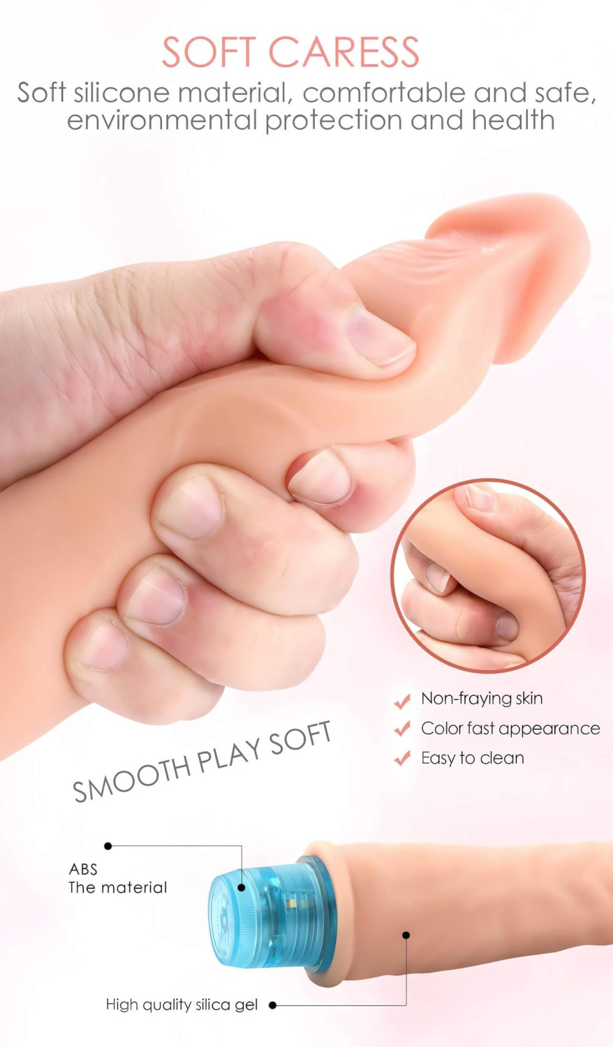 Realistisk, naturfarget vibrator, som er silkeaktig og myk som ekte hud. Takket være det myke silikonmaterialet kan du nå alltid oppleve naturtro hud: fløyelsmyk, fleksibel, behagelig varm og myk, skånsom og tilpasningsdyktig.