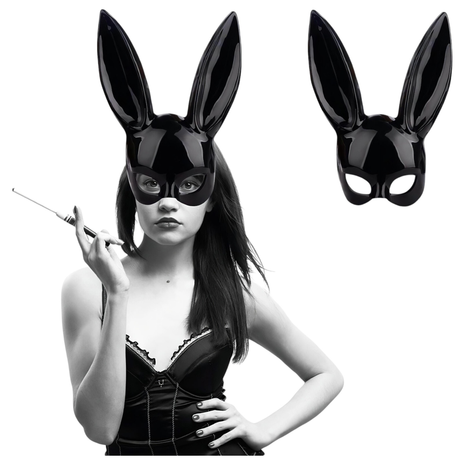 Svart kaninmaske for rollespill eller som kostymetilbehør for å gjøre utseendet ditt enda mer uimotståelig!