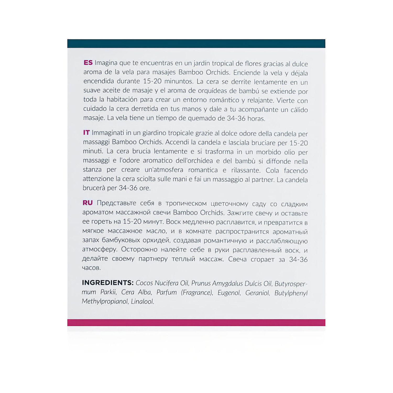 Massasjelys med frisk og mild bambusduft, som etter tenning forvandles til en sanselig og fortryllende massasjeolje av premium kvalitet!