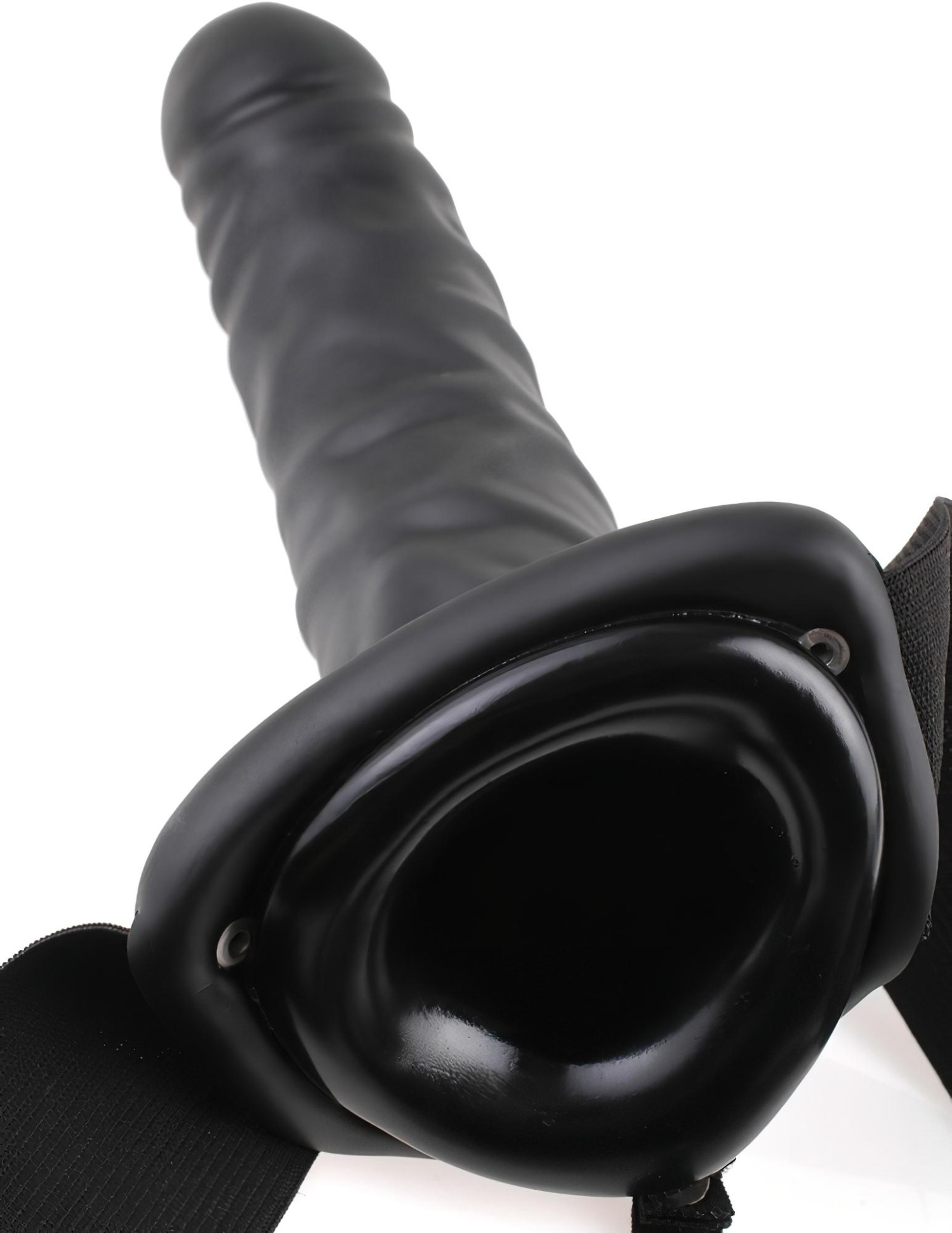 Formet, årete strap-on dildo, hul design og fleksible stropper som gir sikkert feste under de villeste øyeblikkene.