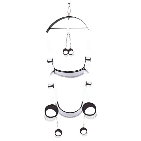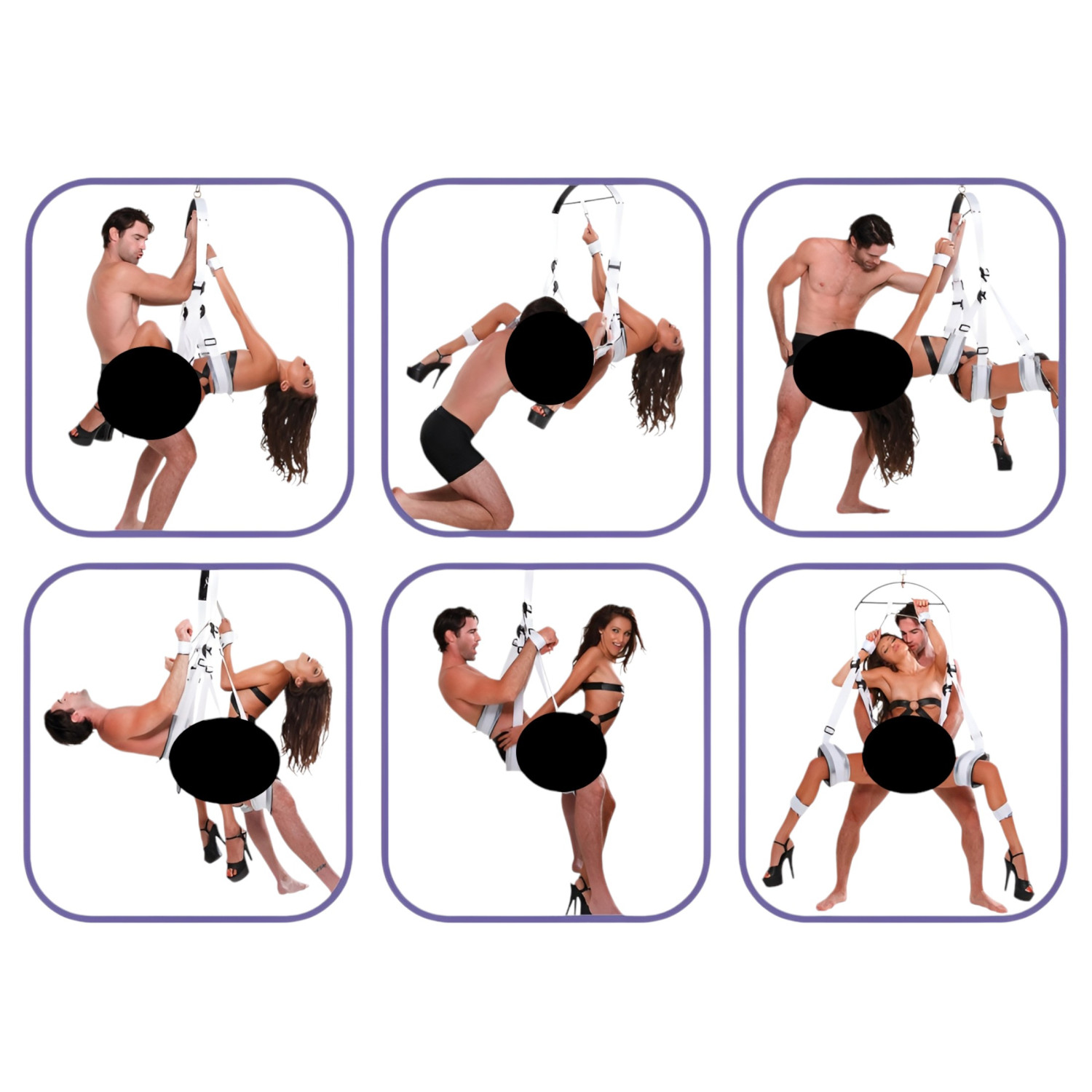 Fest husken til taket med de medfølgende verktøyene. Juster til ønsket høyde og vinkel. Bruk håndledd- og ankelstropper for å sikre kroppen i ønsket posisjon. Prøv forskjellige posisjoner for en enda mer spennende opplevelse.