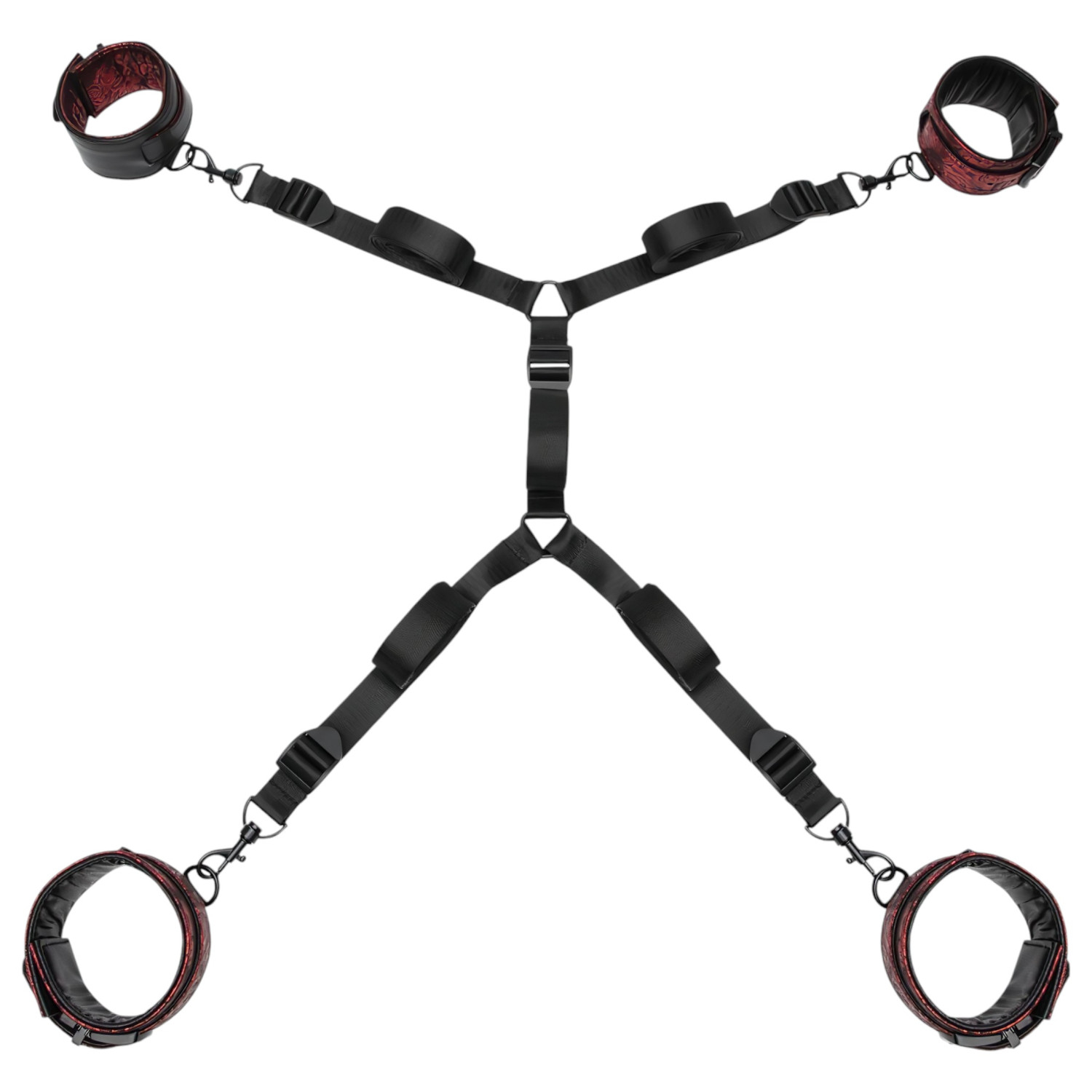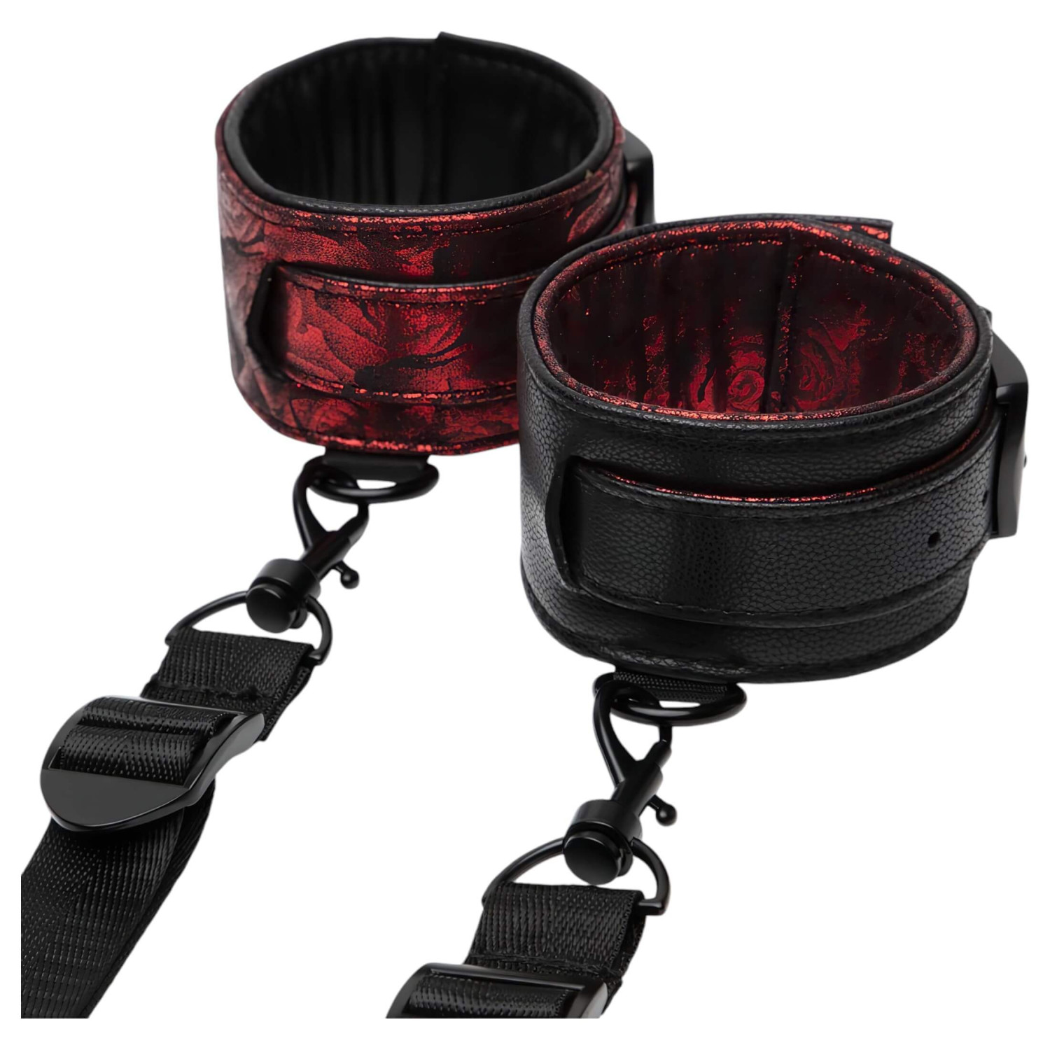 Sexy, røde satengbelagte håndjern sett for når du vil fullstendig fange din kjære!