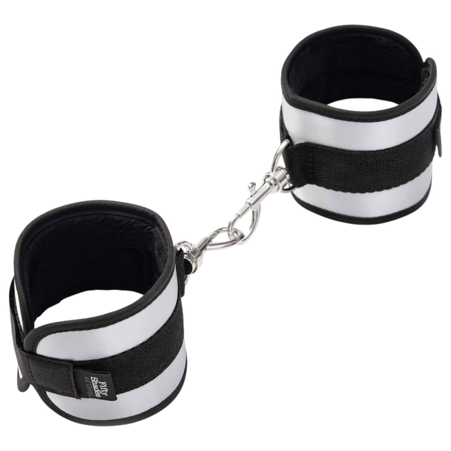 Plasser håndjernene rundt håndleddene slik at den myke plysjen behagelig hviler mot huden. Juster borrelåsen til riktig størrelse, og koble deretter håndjernene sammen med den medfølgende karabinkroken. Når du er ferdig med leken, er det enkelt å løsne håndjernene ved å fjerne karabinkroken.