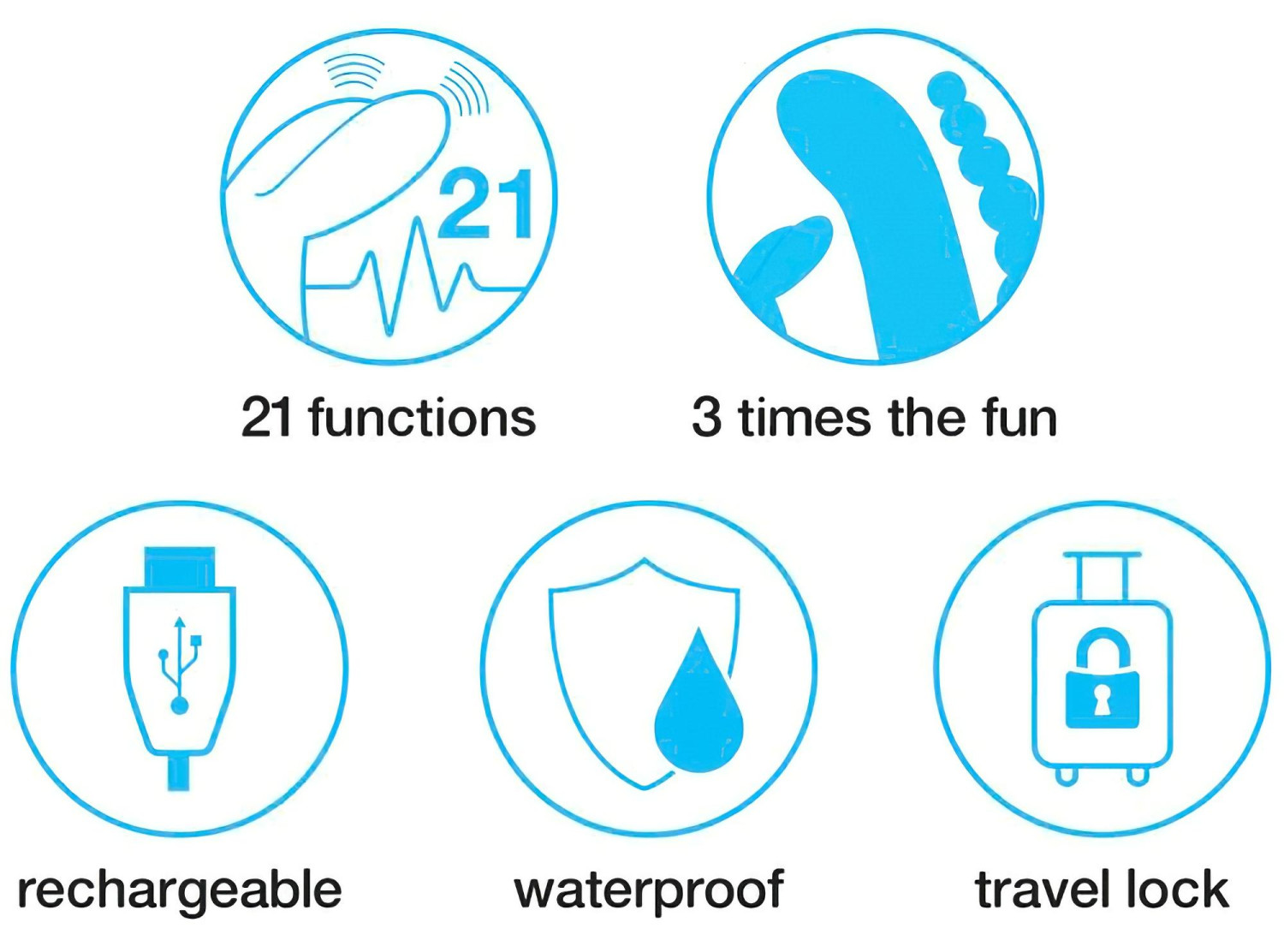 • 12 vibrasjonsmoduser i hovedstammen, 9-9 moduser i klitoris- og analkar