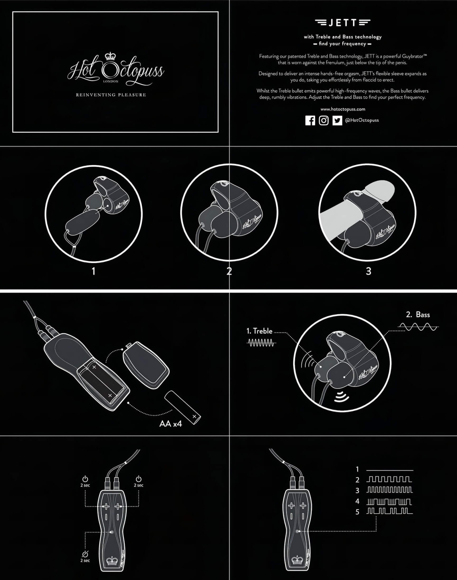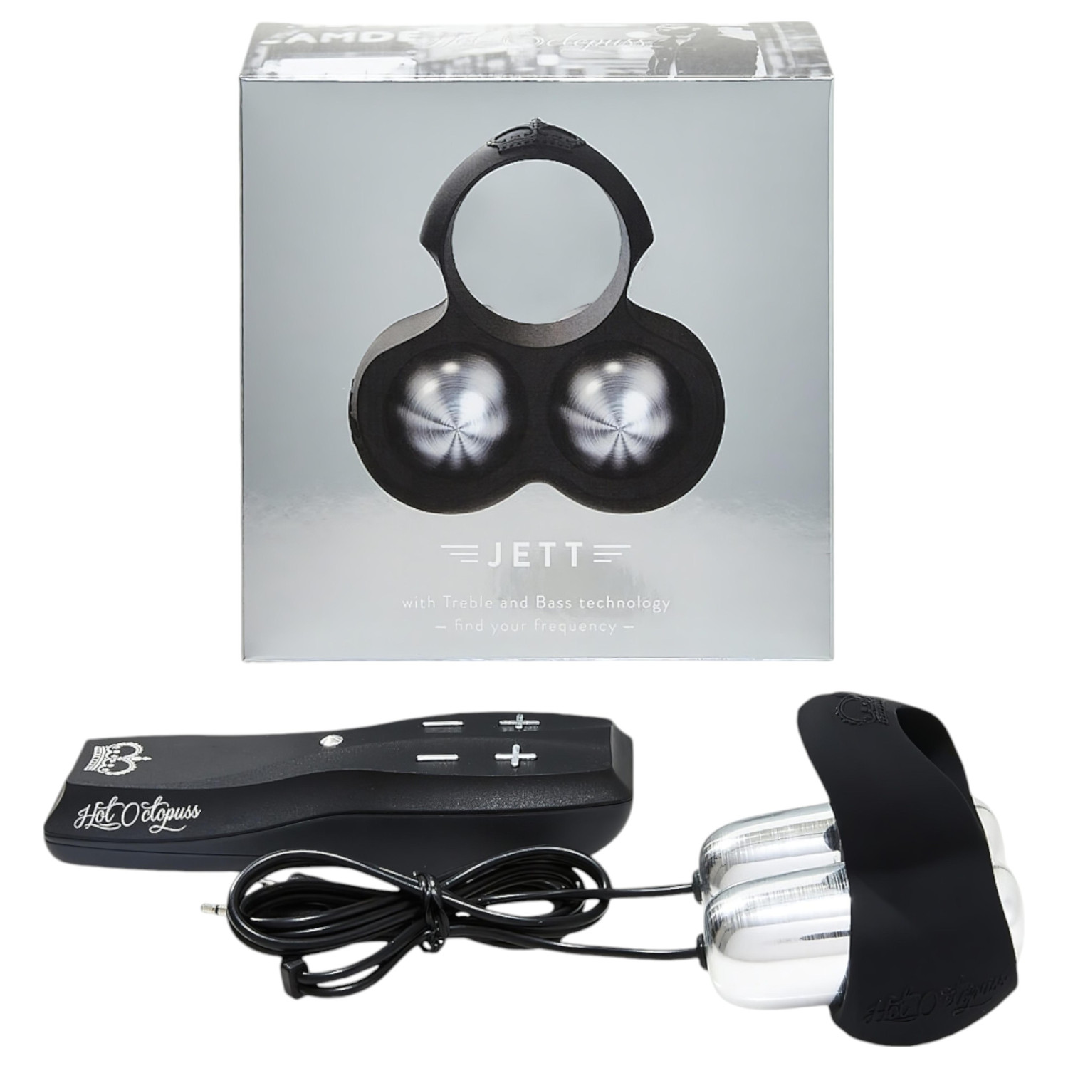 Se presentasjonsvideoen for HOT Octopuss JETT - to-motorisk penishodevibrator (svart-sølv).
