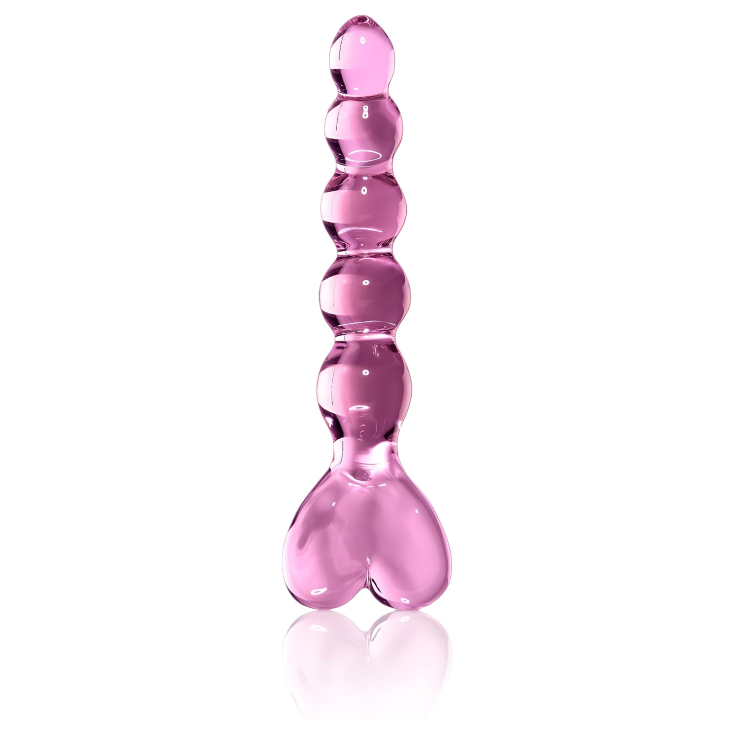 Icicles No. 43 - perlebesatt, hjerteformet glassdildo (rosa)