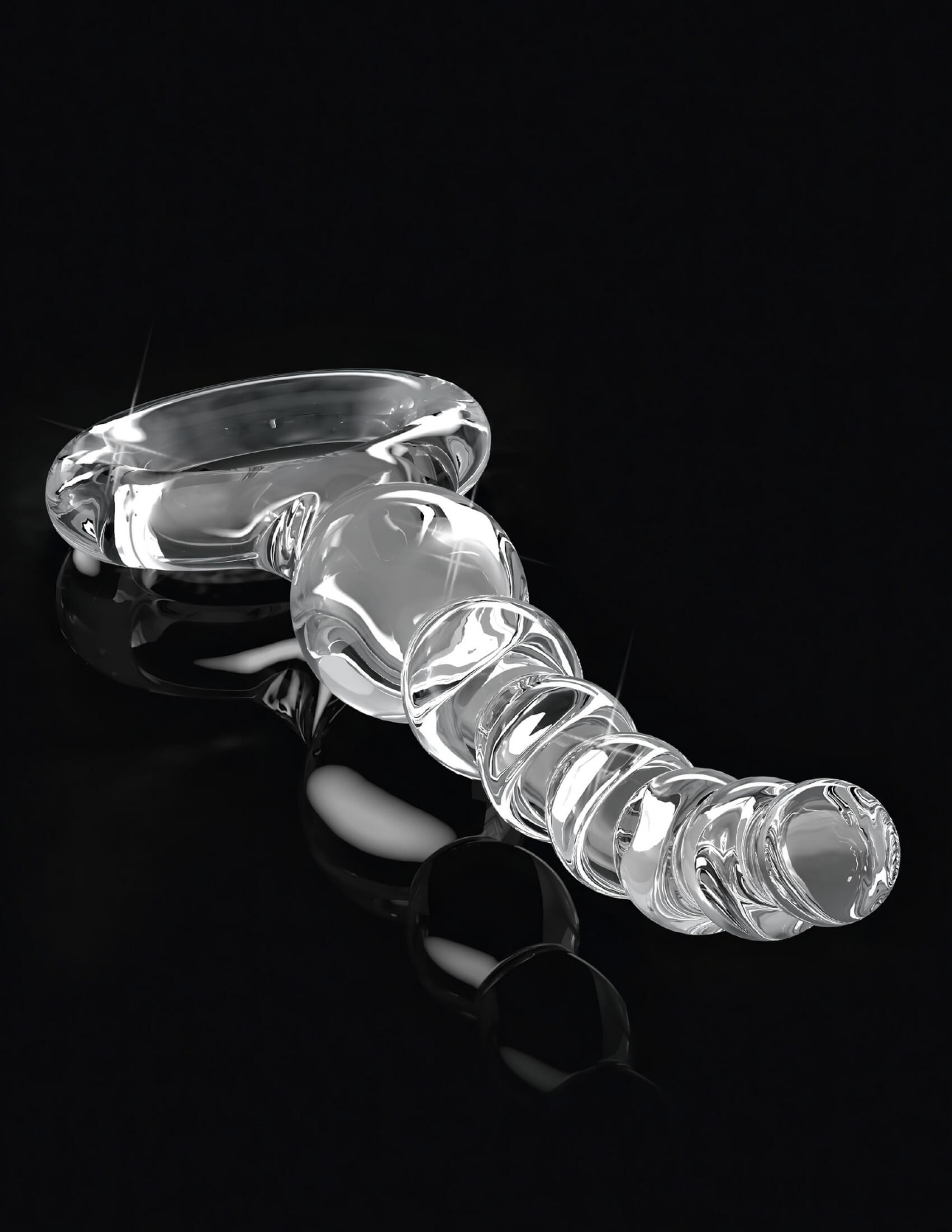 Elegant, håndlaget glassdildo med kuleoverflate, som både er designelement og funksjonelt nytelsesverktøy.