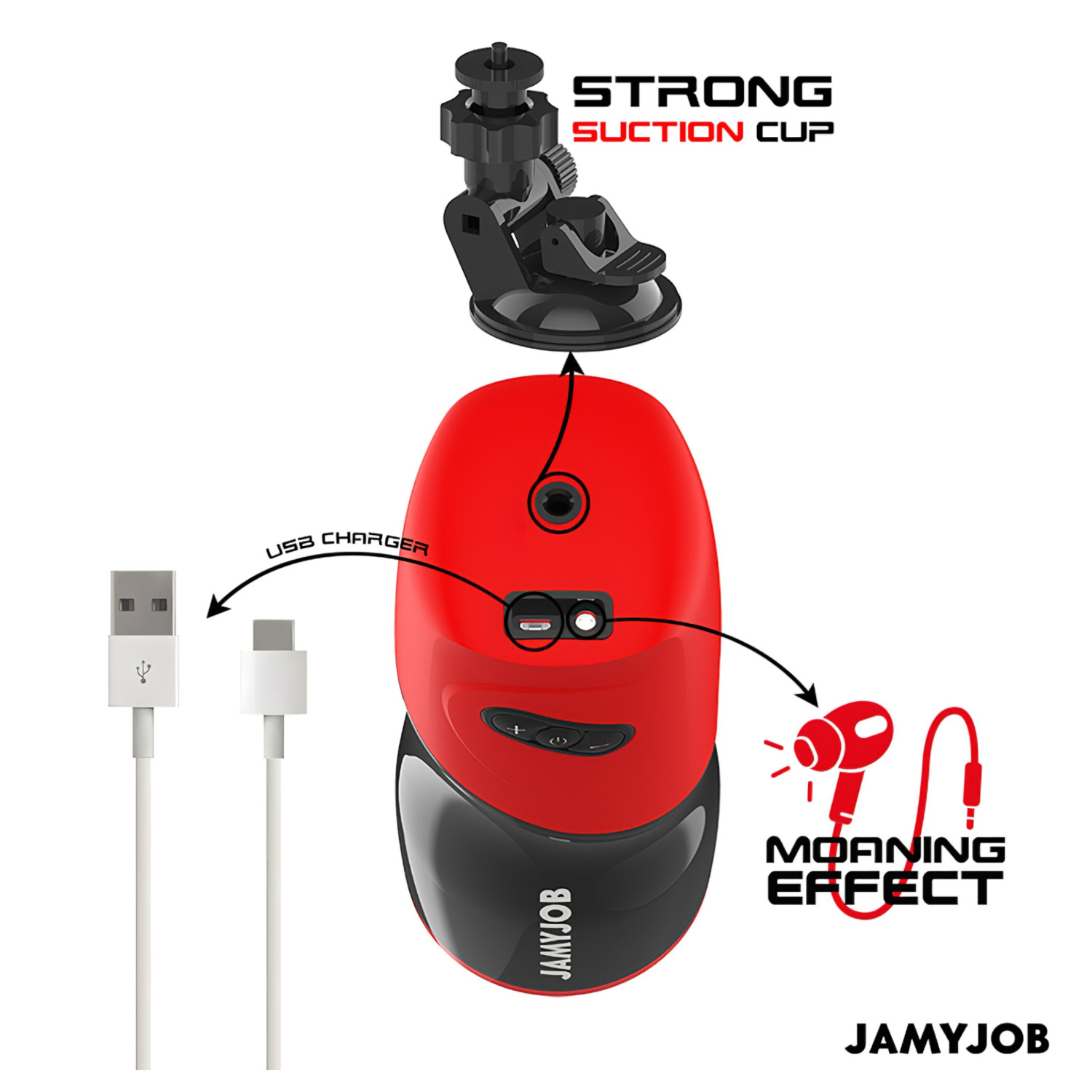 JamyJob XPEED er en av de mest innovative mannlige masturbatorene på markedet, som kombinerer realistiske bevegelser, kraftige støt og realistiske lydeffekter i et elegant, sort-rødt design. Den myke, gjennomsiktige medisinske silikon-innsatsen gir en komfortabel passform, mens 5 ulike støtrytmer og justerbar intensitet gir deg full kontroll. Den USB-oppladbare motoren sikrer langvarig ytelse, og det vannavstøtende designet gjør rengjøring og bruk på badet enkelt.