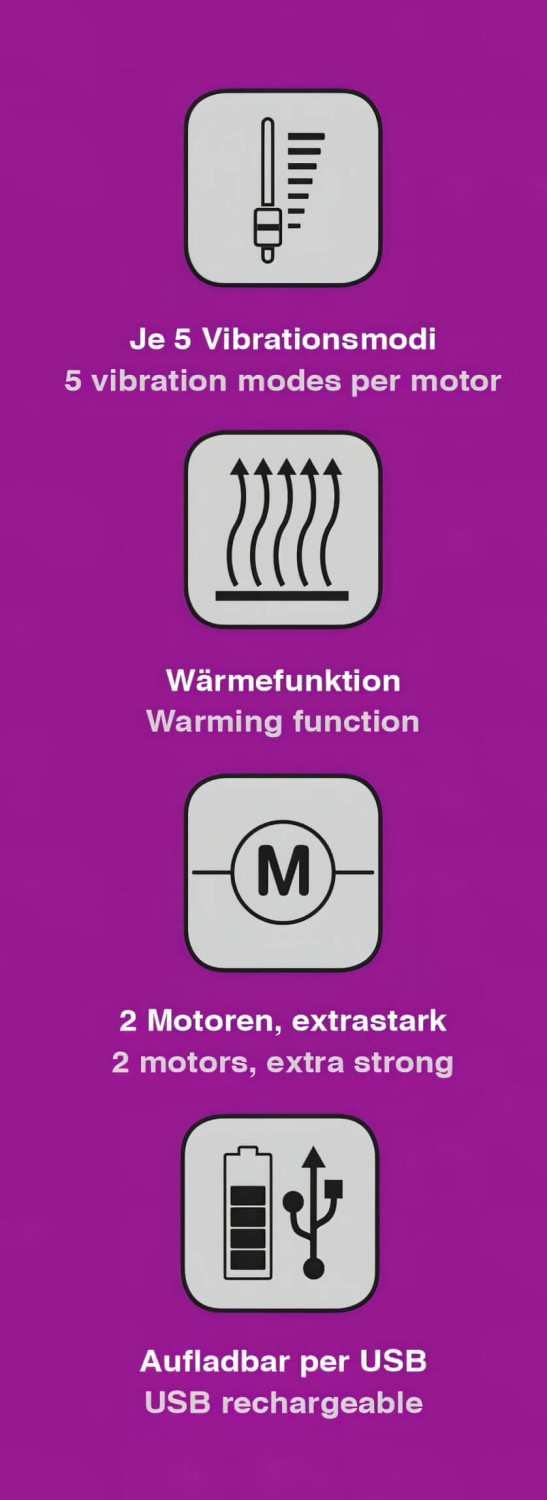 • 5 varierte vibrasjonsmoduser med to uavhengige motorer