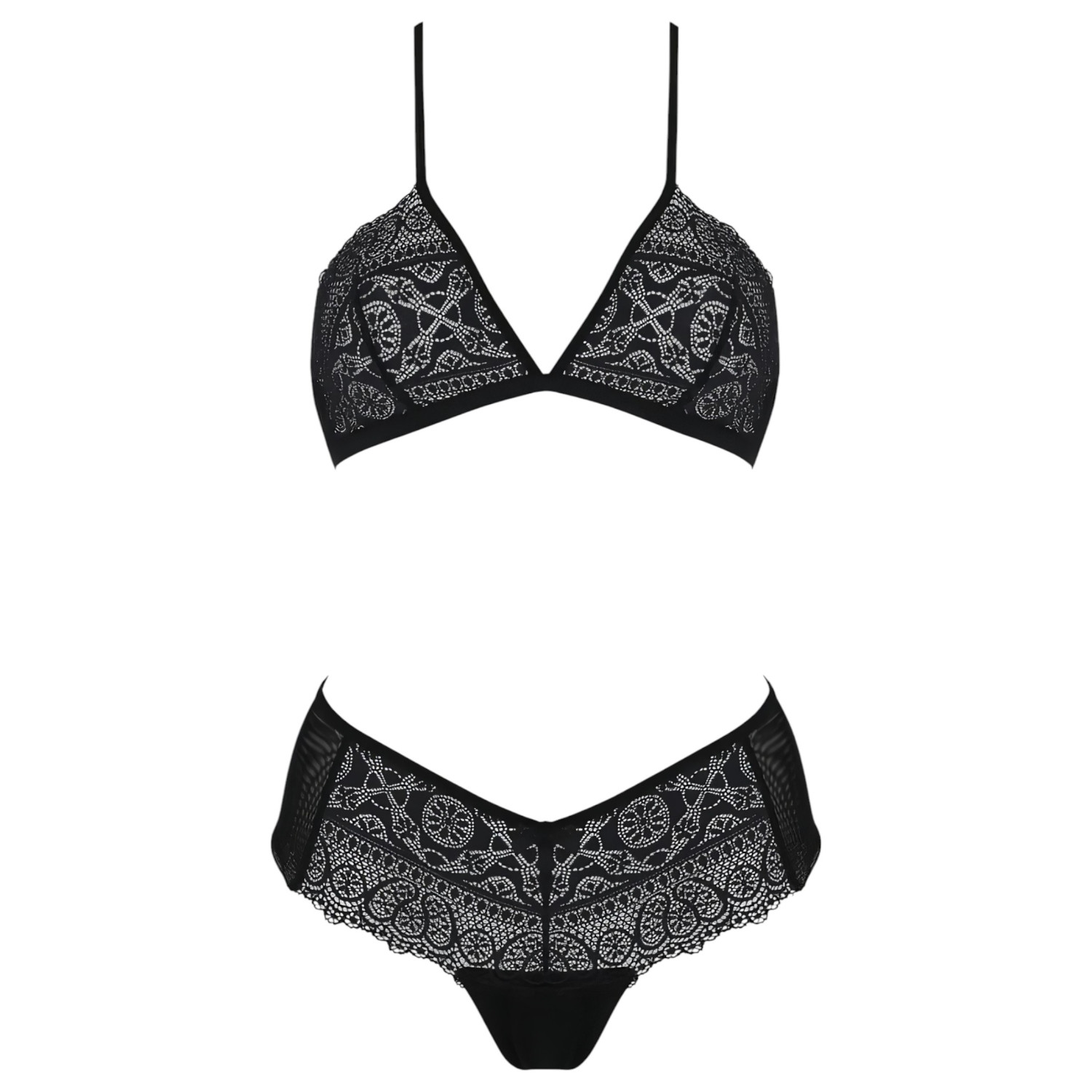 • Bikinitopp i mønstrete blonder med justerbare kryssbånd og to-rads hektelukking bak