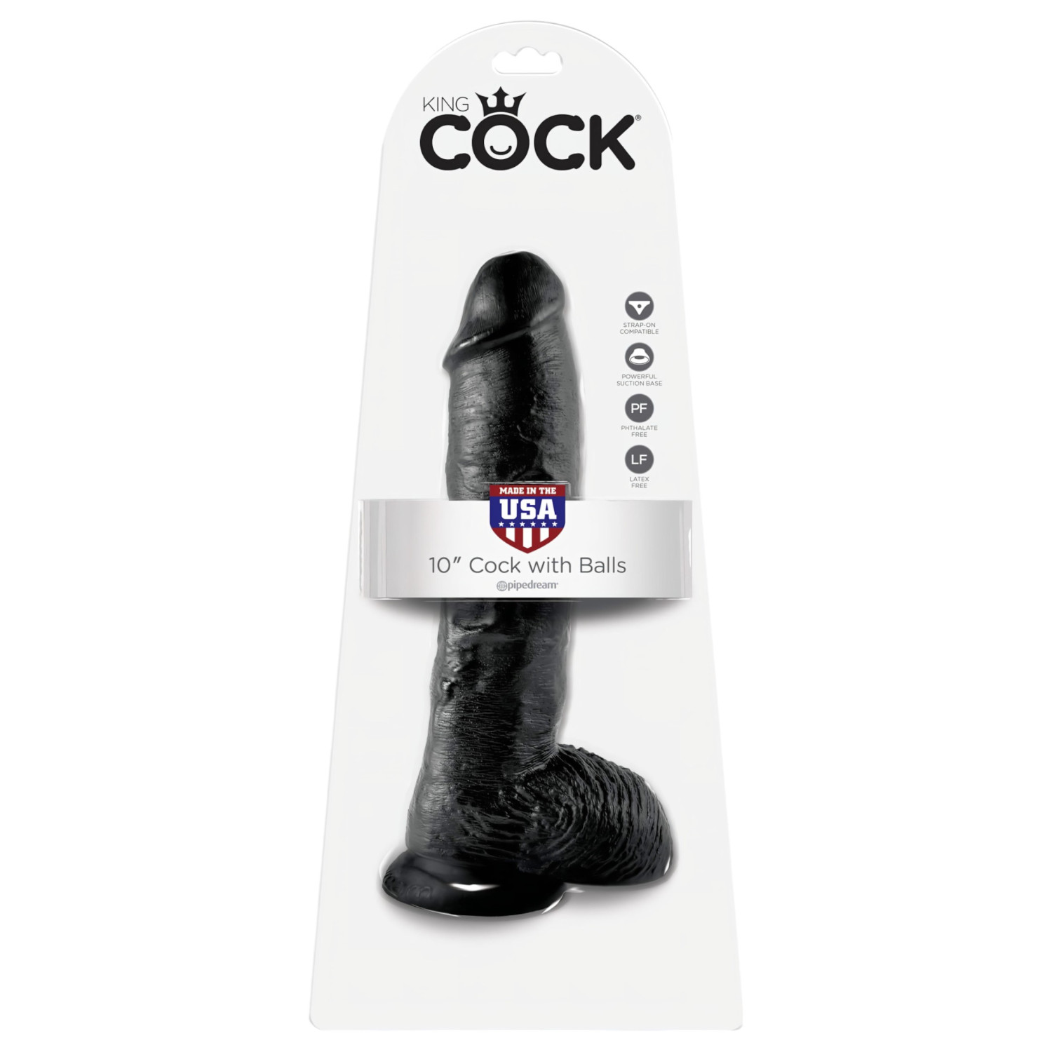 King Cock 10 tommers dildo med testikler (25 cm) - svart