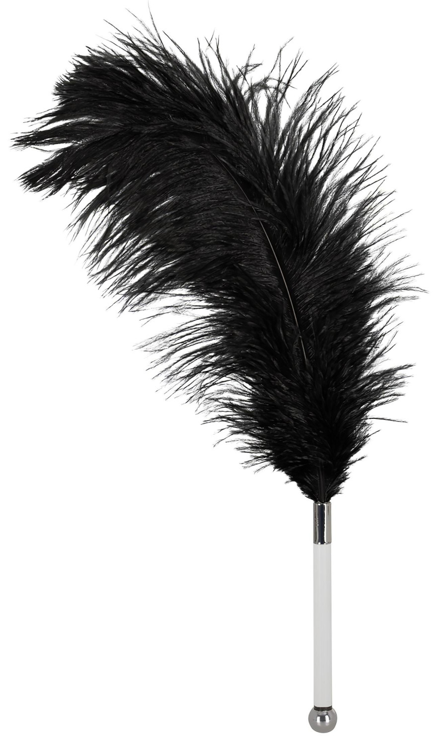 Kjærtegner i sort strutsefjær med kort akrylhåndtak