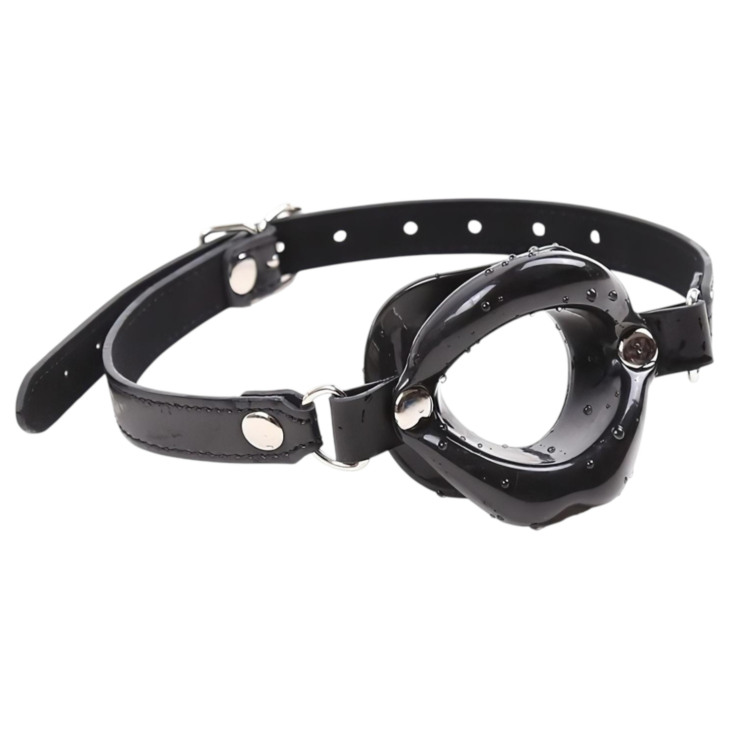 Plasser den munnformede silikoninnsatsen i partnerens munn slik at den naturlig passer rundt leppene og tennene. Fest deretter den justerbare stroppen og fest den behagelig, men sikkert. Den åpne formen gjør at munnen fortsatt er brukbar – kontrollen er helt i den dominante partens hender.