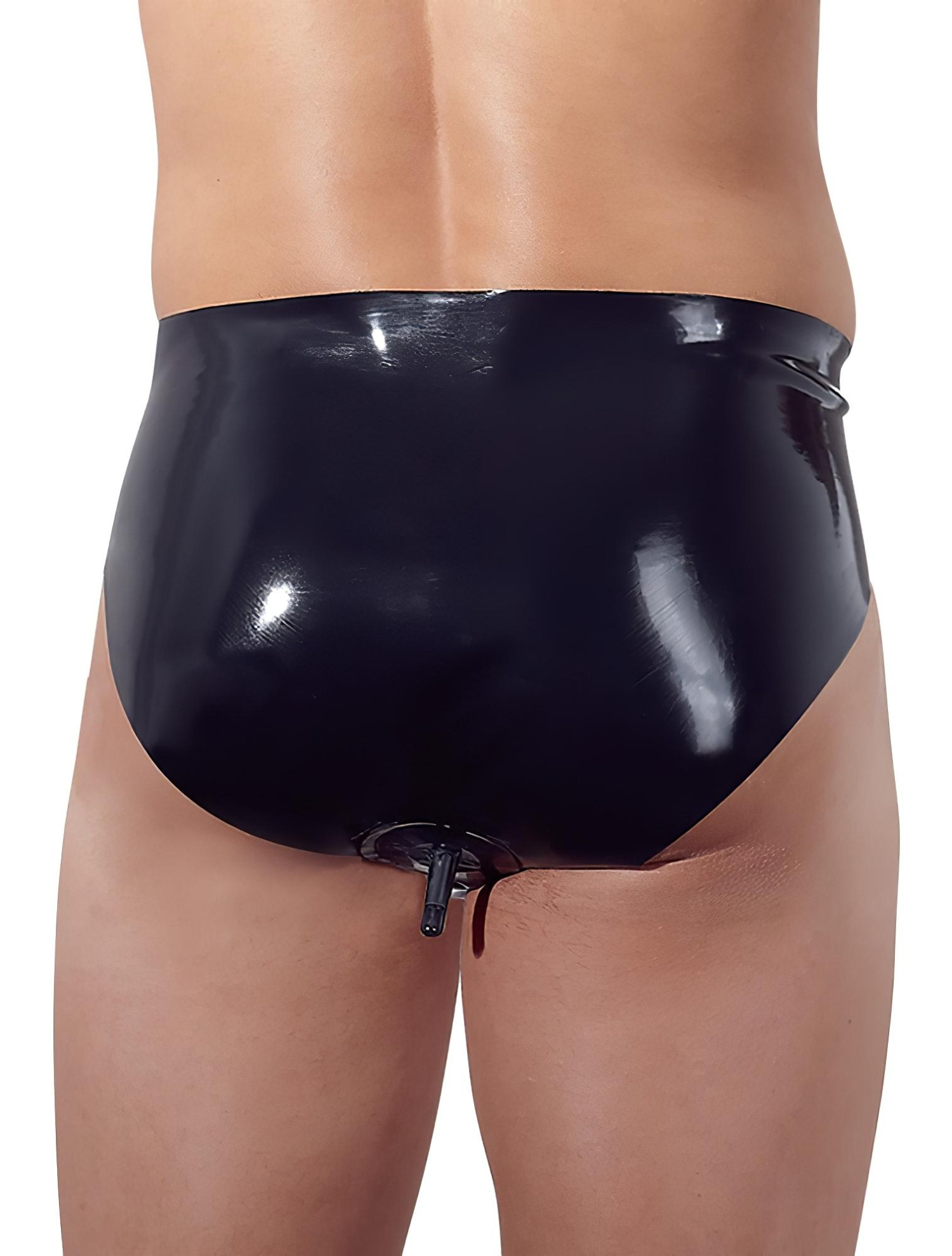 LATEX - Herreundertøy med innvendig konisk analdildo (svart) - L