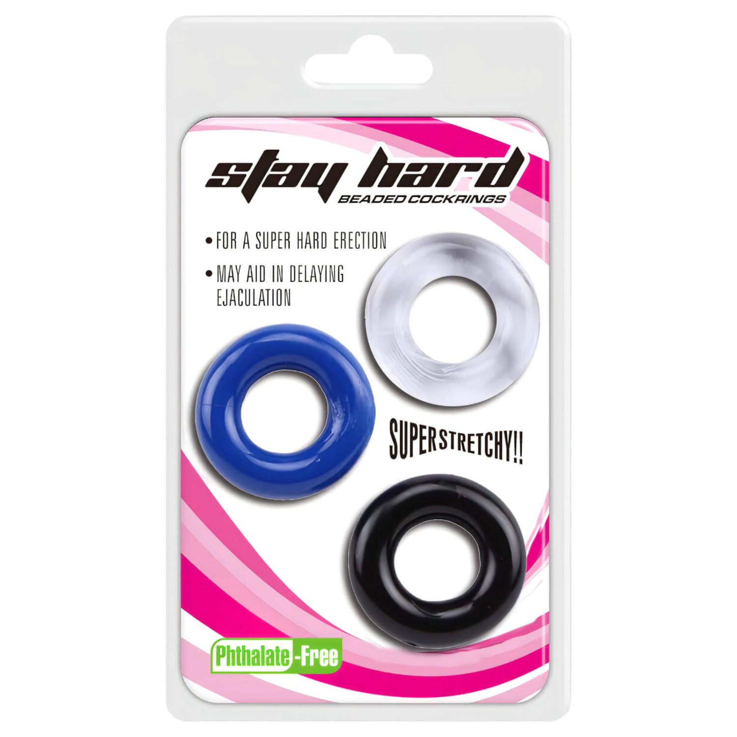 Lengre, hardere ereksjon i én pakke! Lonely Stay Hard ring settet inneholder tre forskjellige størrelser på fleksible ringer, slik at du kan finne den som passer best for deg.