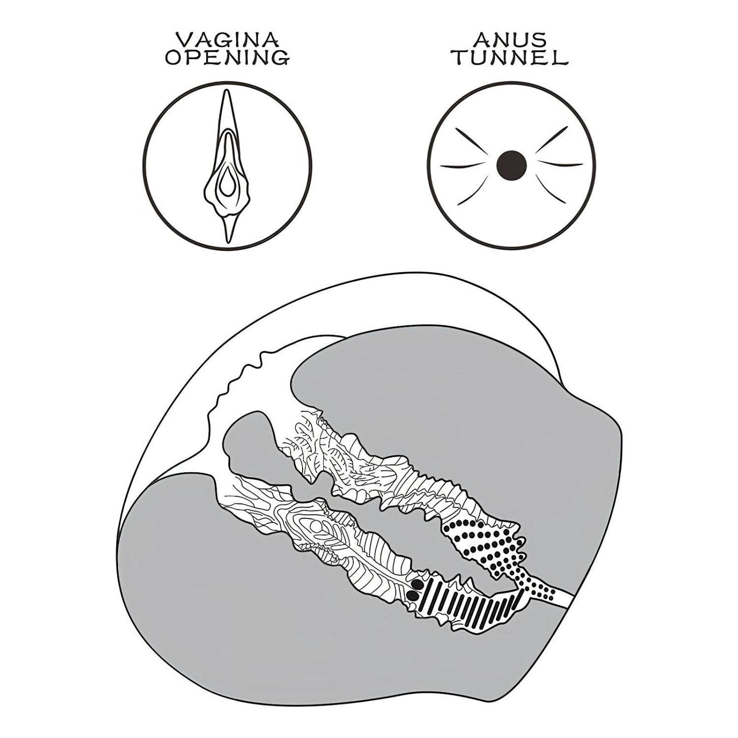• Doble penetreringsmuligheter - anale og vaginale åpninger, begge med unik tekstur for maksimal stimulering