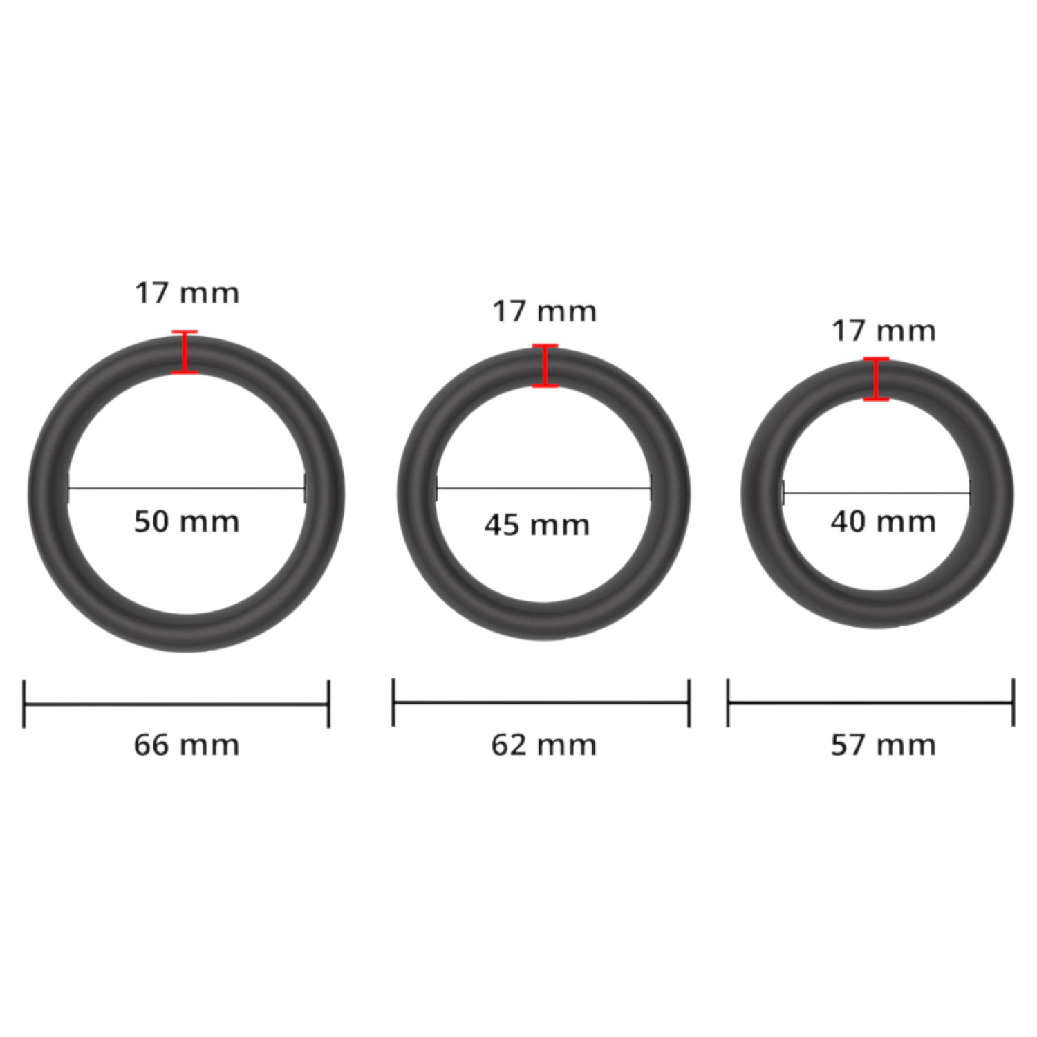 • Ringens diameter: 4 cm, 4,5 cm, 5 cm
