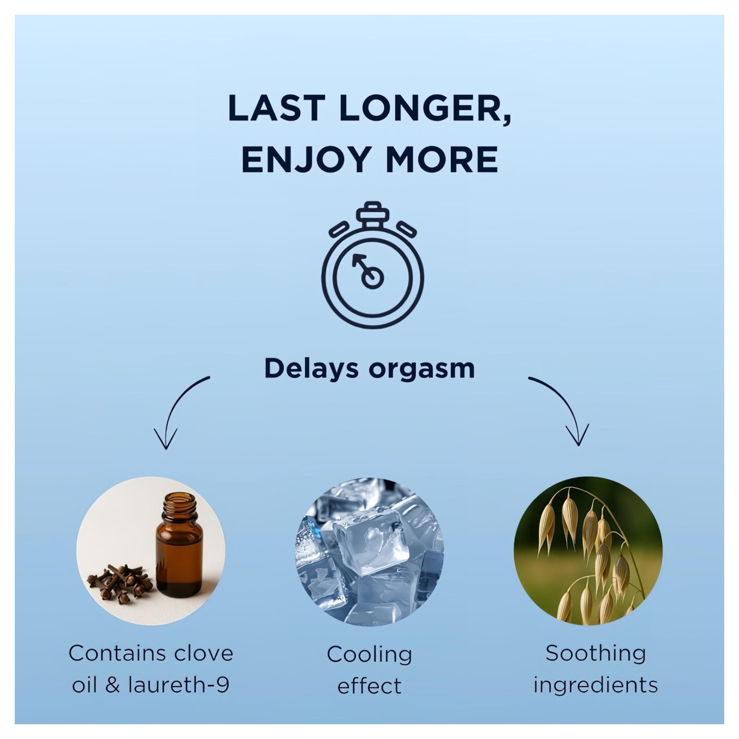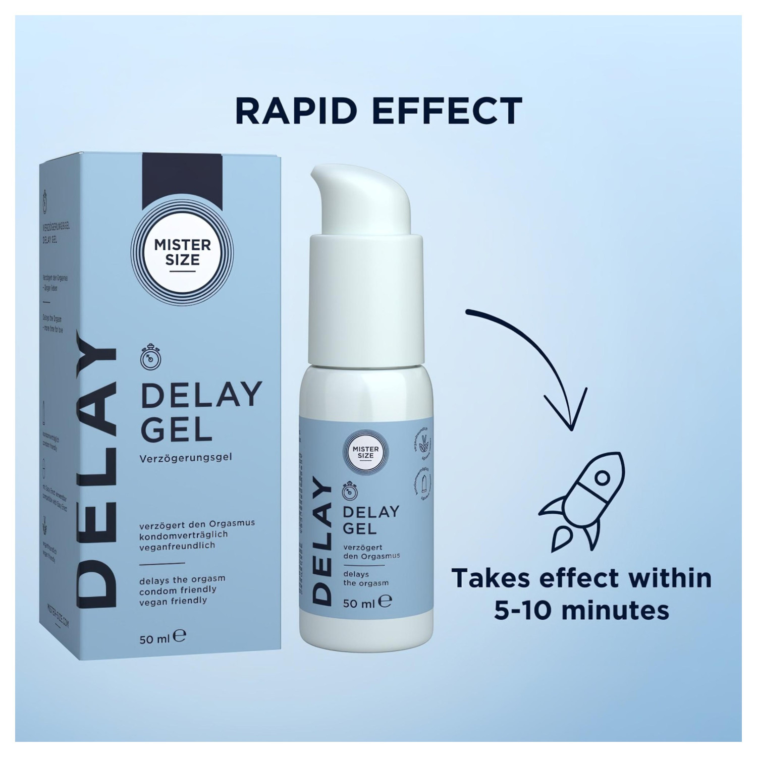 Mister Size forsinkelsesgel er spesielt laget for menn som ønsker å forlenge glede av samvær uten å gi avkall på følsomhet eller nytelse. Naturlige ingredienser som nellikolje og laureth-9 reduserer forsiktig følsomheten og hjelper med å kontrollere tidlig utløsning. Den kjølende effekten øker kontrollen, mens ekstrakt fra johannesurt og havre roer og pleier huden.