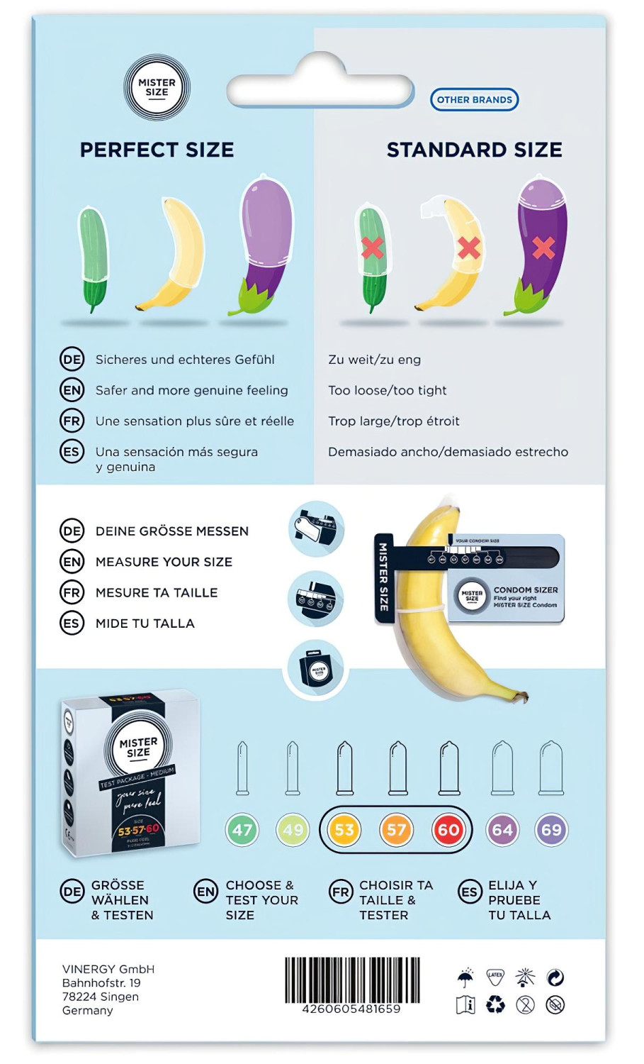 Mister Size Kondom Testpakke med Penismåler - 3 stk