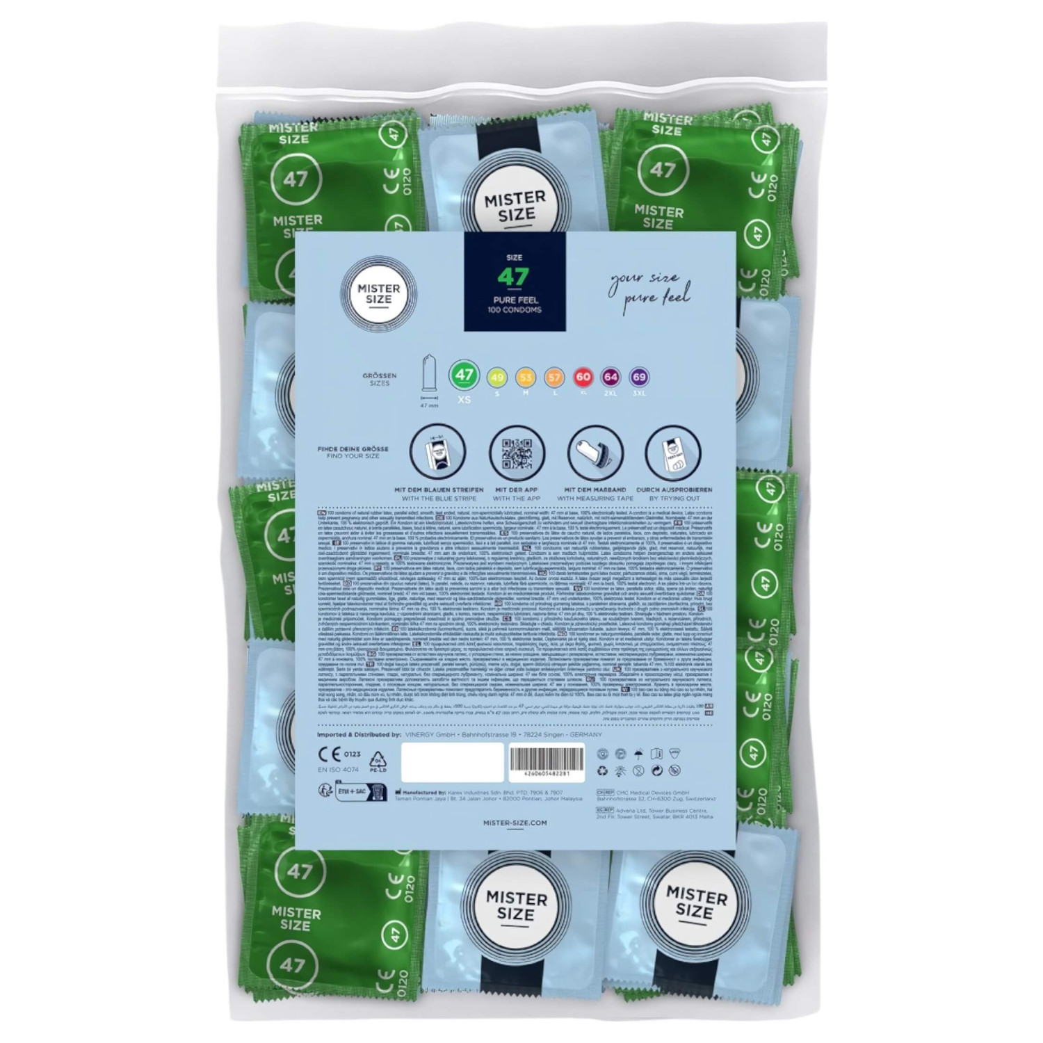 • 100 stykker Mister Size 47 mm, ultratynne, smurte kondomer, individuelt pakket.