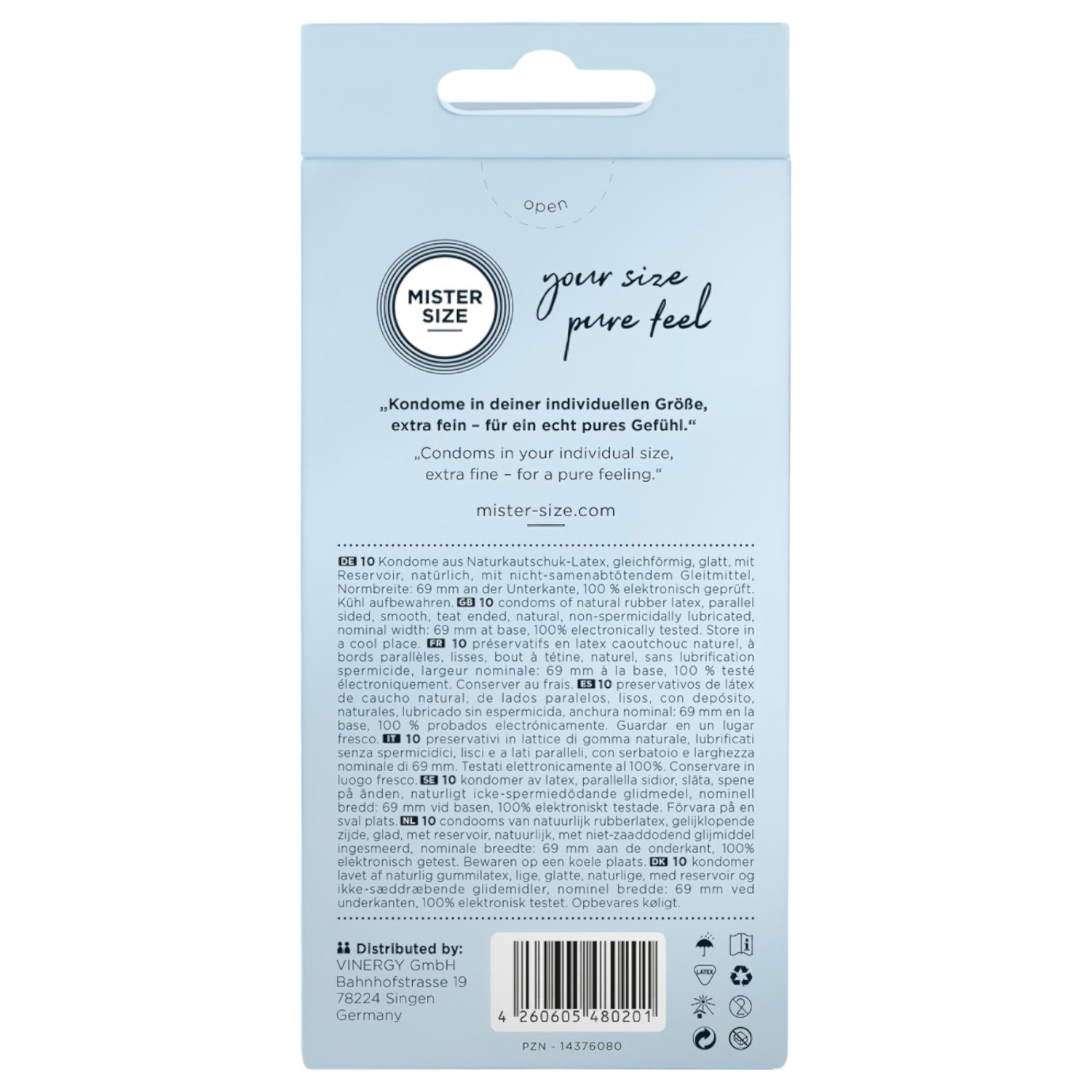 • 10 stk Mister Size 69 mm, ultra-tynne, smurte kondomer, individuelt pakket.