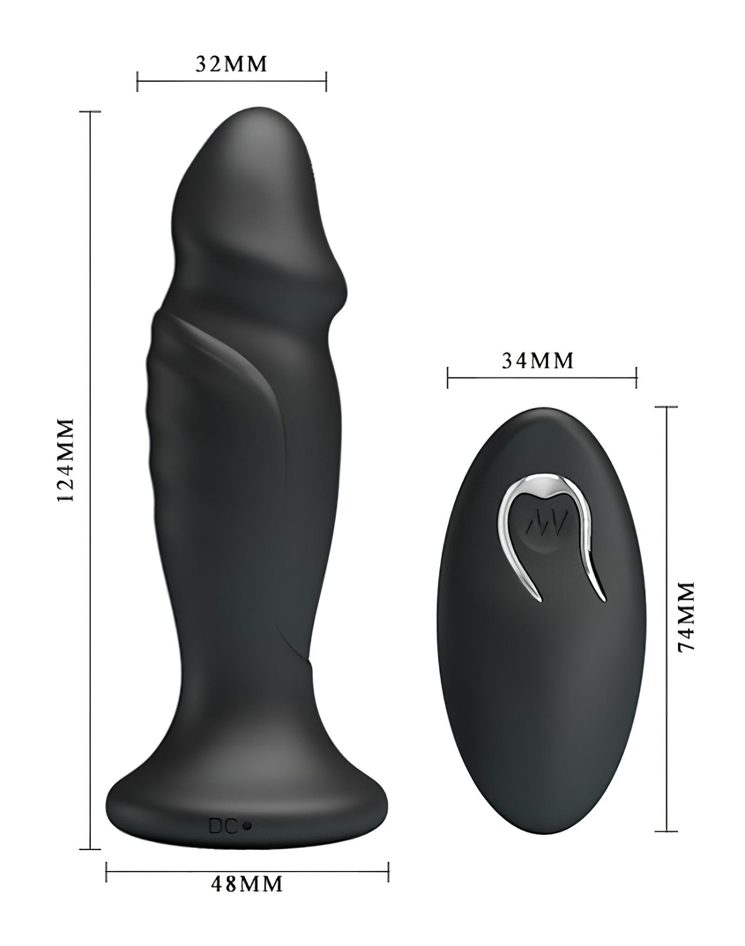 På basen av nytelsen er det en enkelt knapp. Hold knappen inne for å sette produktet i standby, og deretter kan det også styres med fjernkontrollen. Trykk kort for å bytte mellom vibrasjonsmoduser. Hold knappen inne igjen for å slå av vibratoren helt.