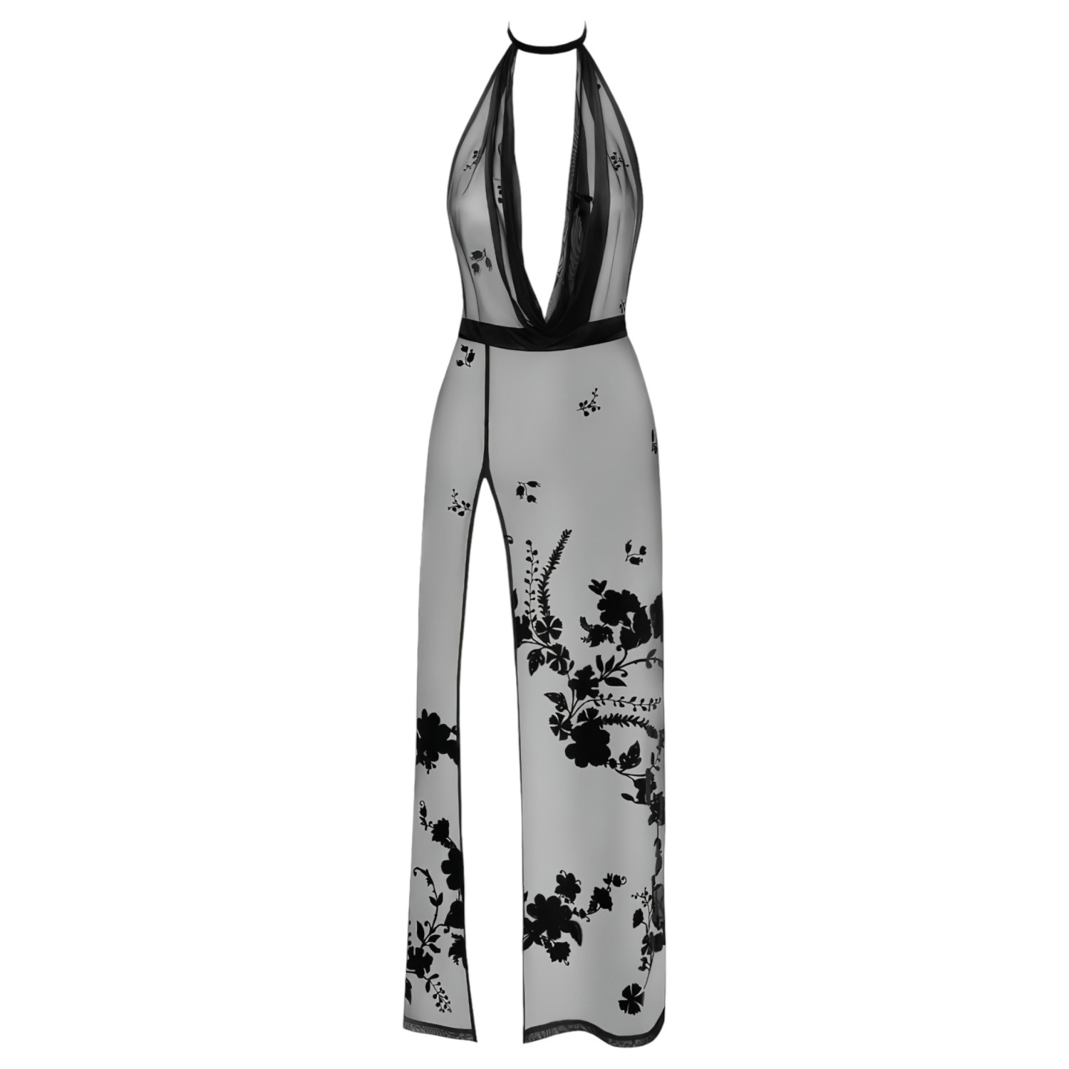 Noir - Gjennomsiktig Maxikjole med Blomsterdesign (Svart) - L