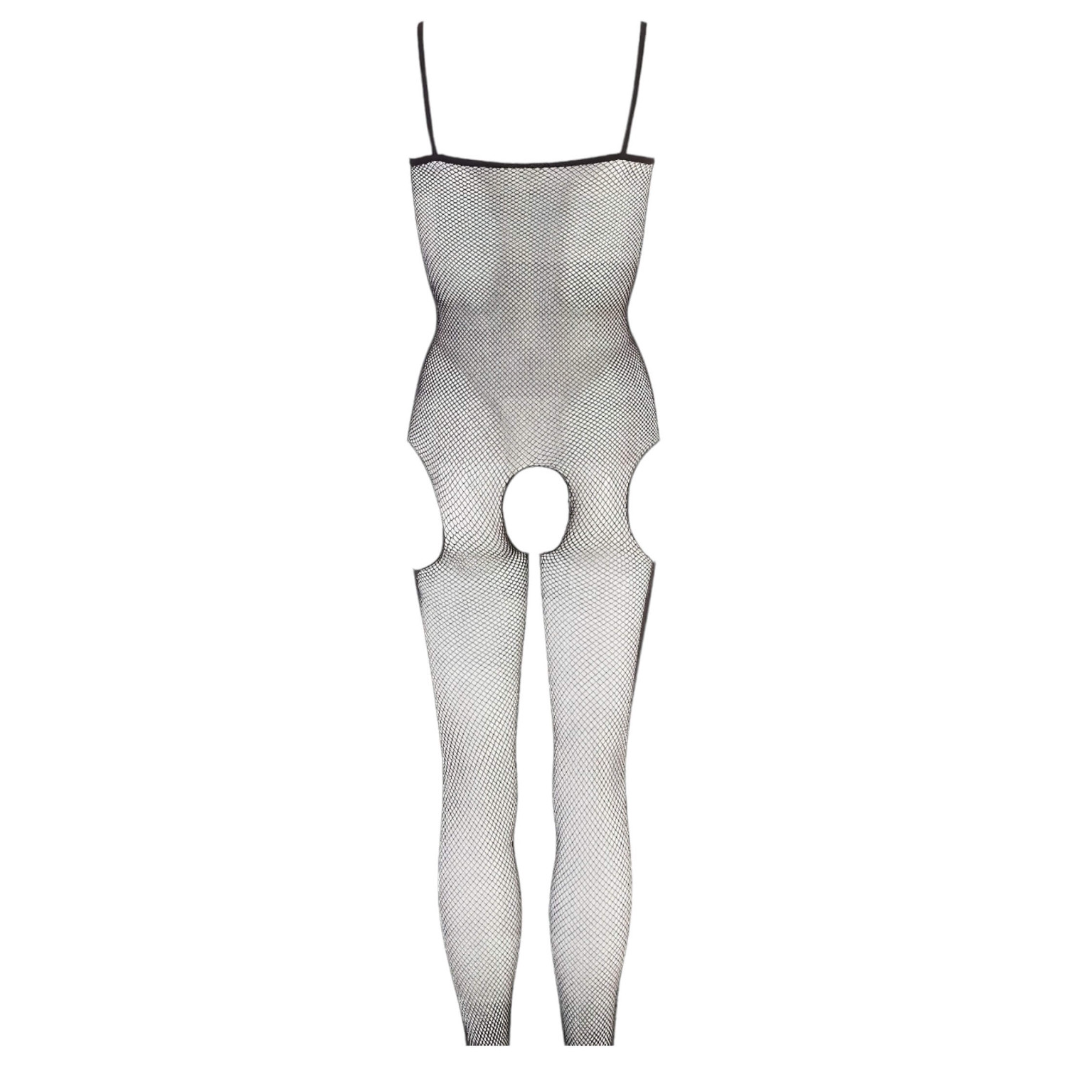 • 1 stykke svart netting-overall, med åpne sider og skrittparti.