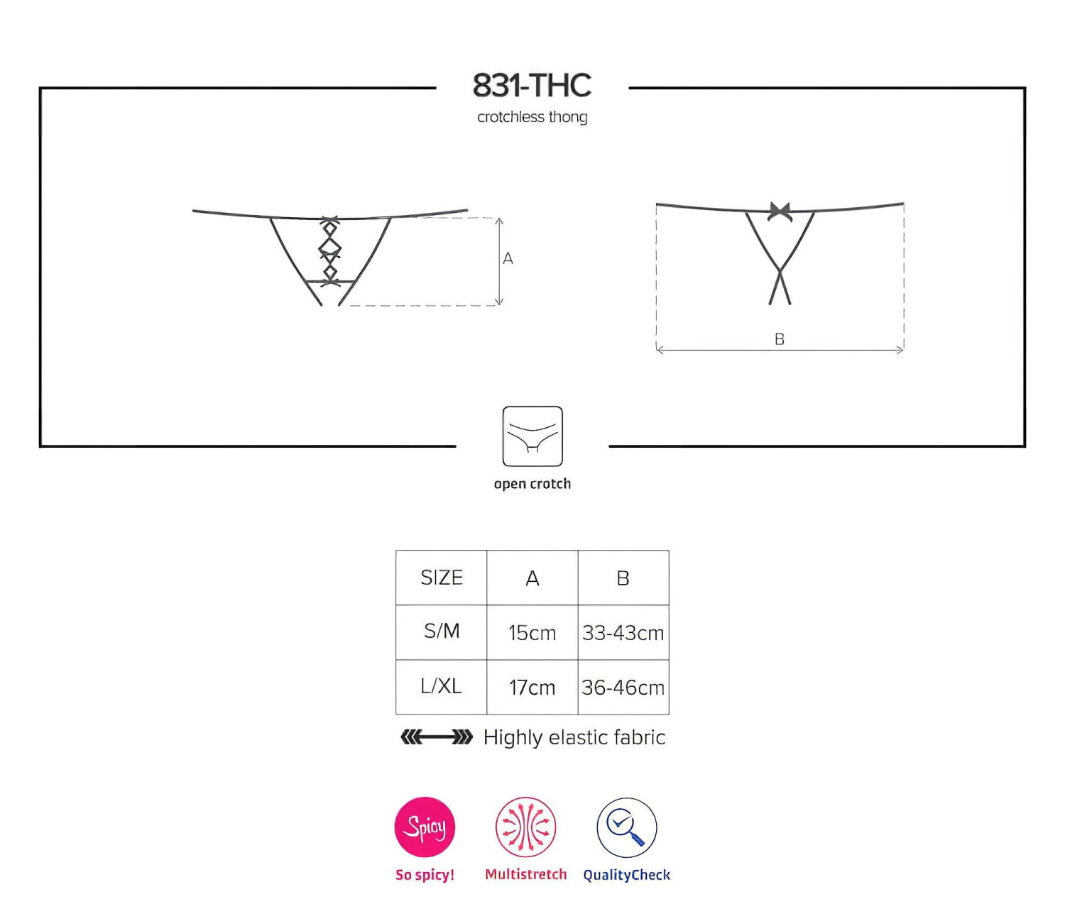 Obsessive 831-THC-1 - Åpen blondetanga med små sløyfer (svart) - L/XL