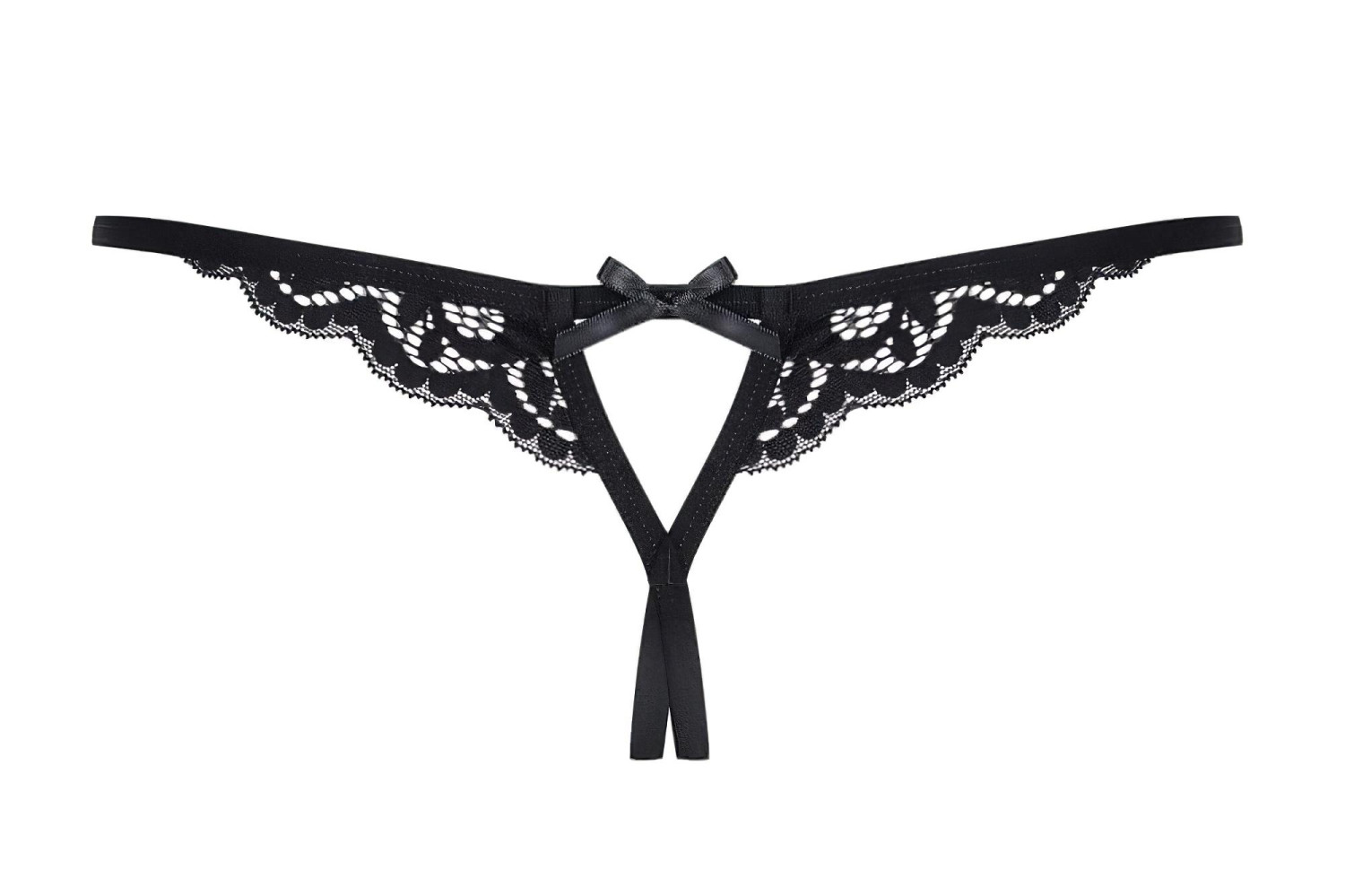 Obsessive 831-THC-1 - Åpen blondetanga med små sløyfer (svart)