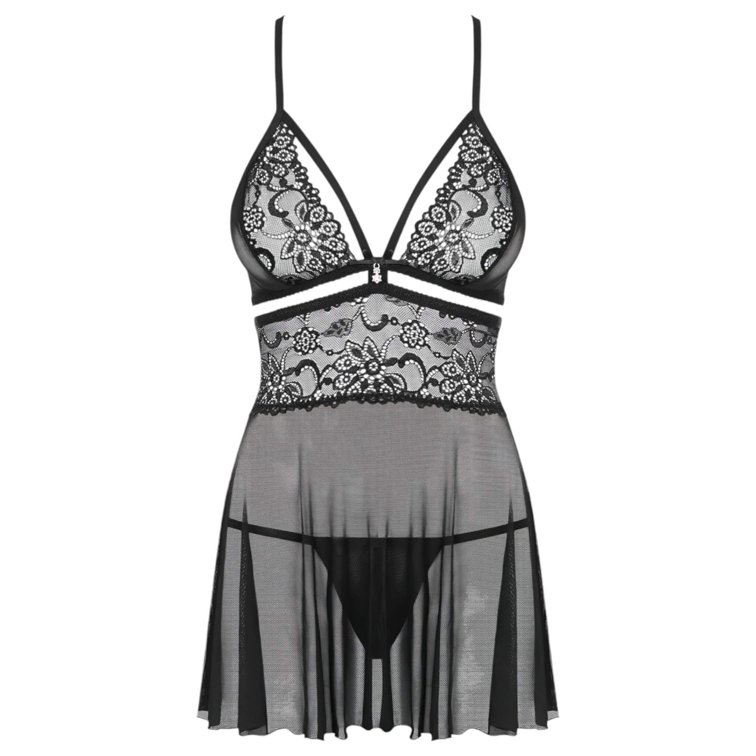 Obsessive 838-BAB-1 - Gjennomsiktig, blondesett babydoll (svart) - 2XL/3XL