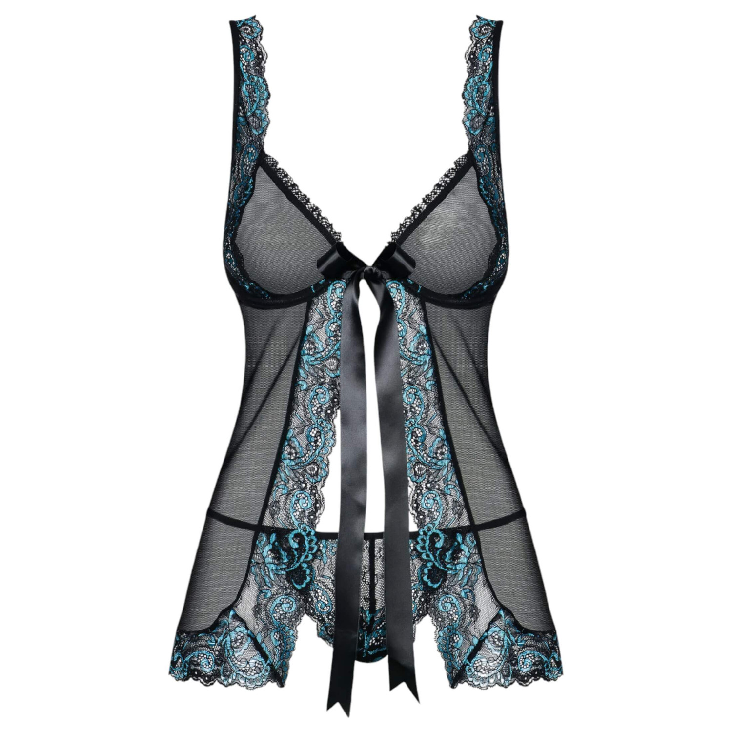Obsessive Amanta - brodert babydoll og stringtruse (svart-turkis)