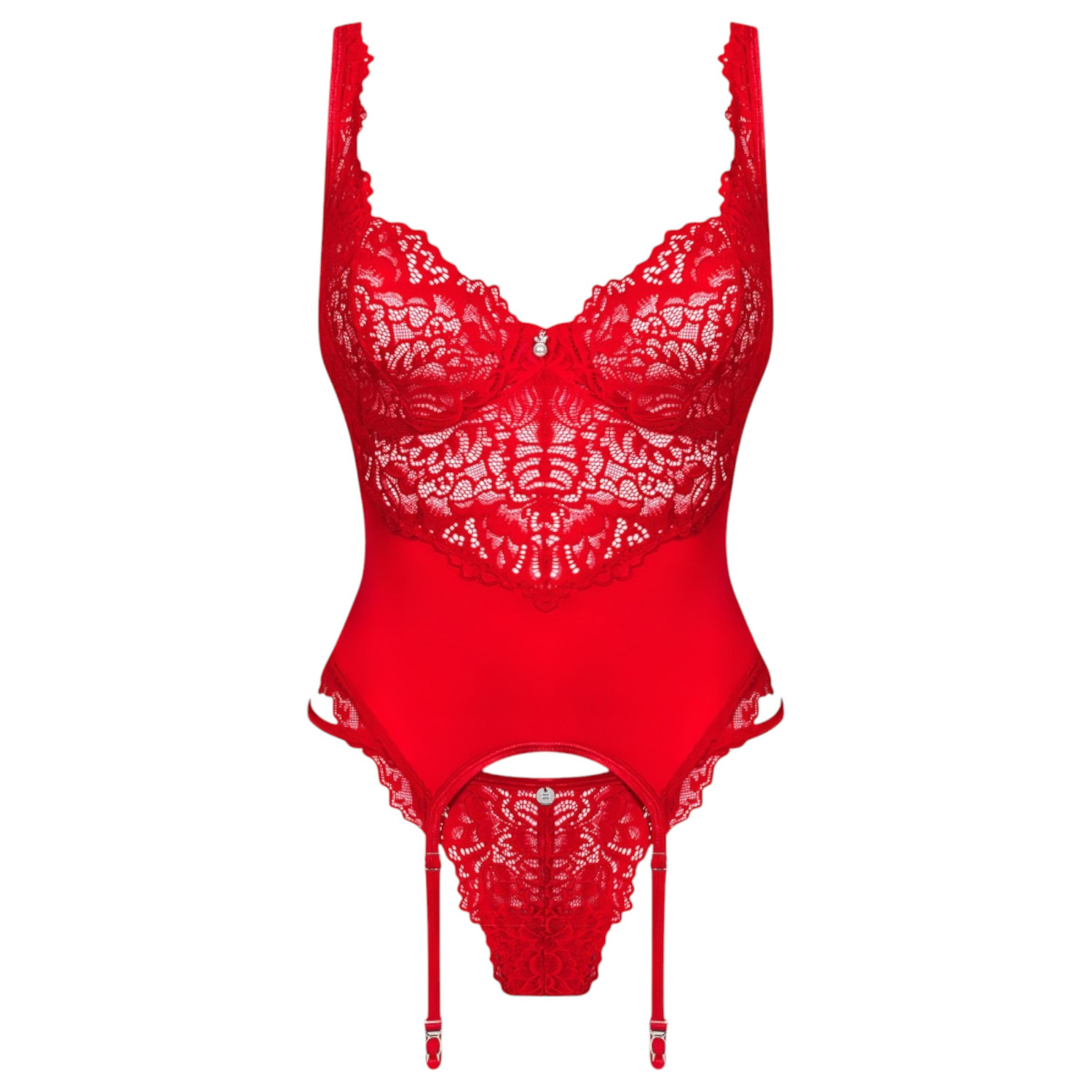 Obsessive Amor Cherris - Rødt Blondeundertøy med Strømpeholder