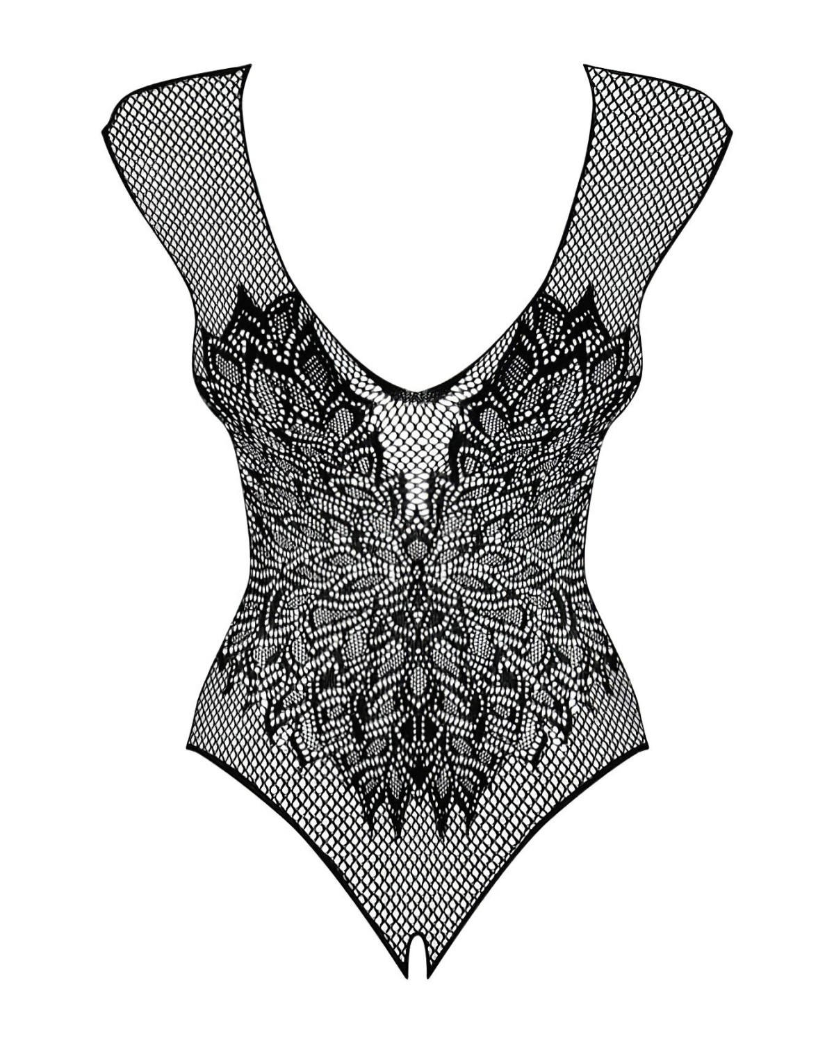 Obsessive B112 – englevinger, åpen nettingbody (svart)
