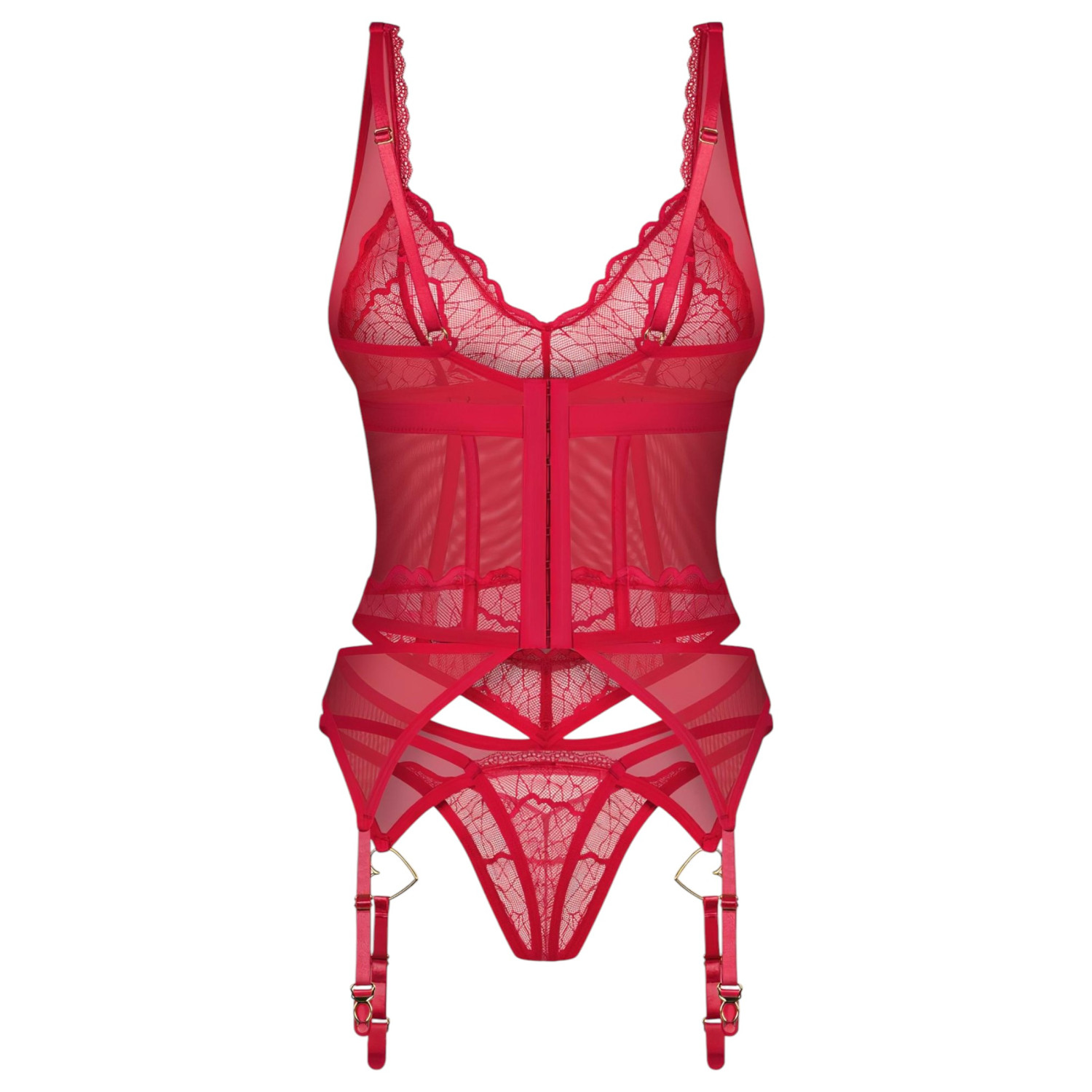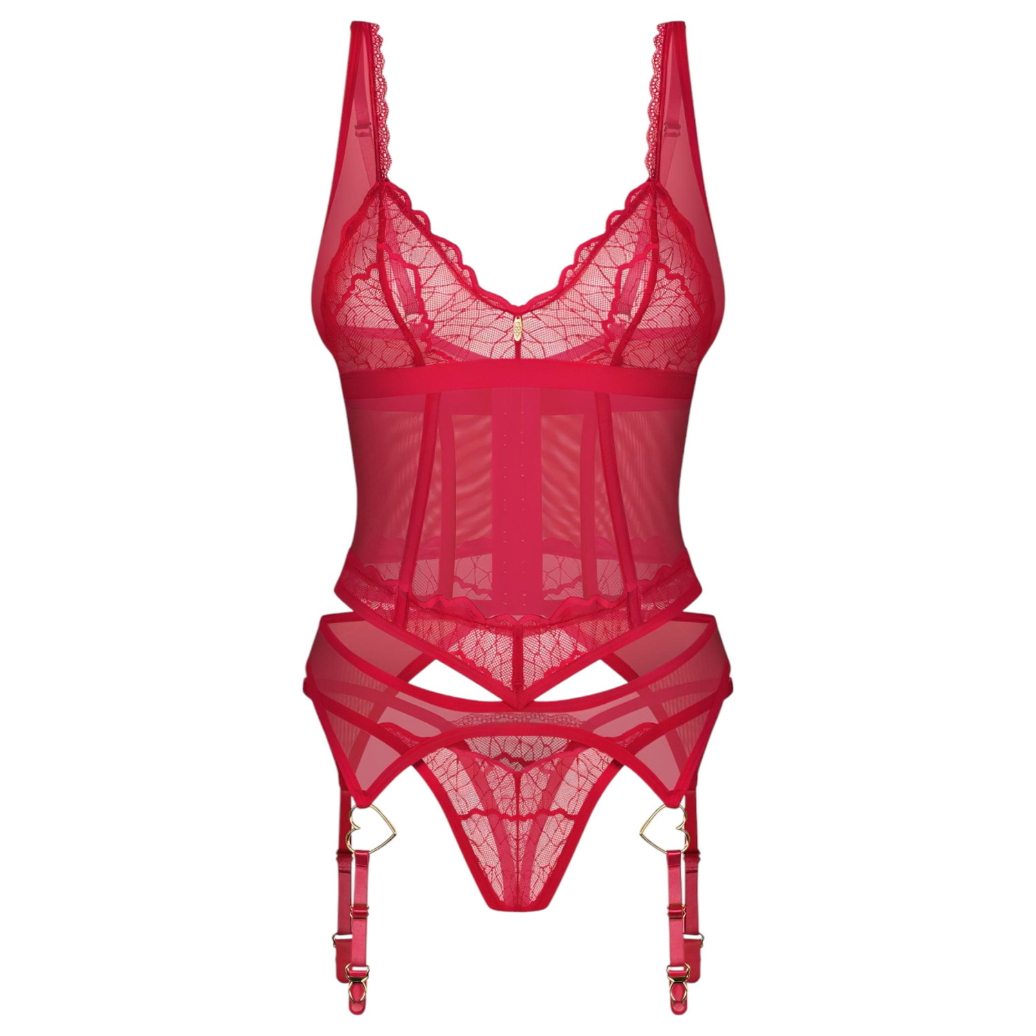 Obsessive Cupide Desir-settet er en sensuell og elegant undertøyssammensetning som består av et korsett og en tanga.
