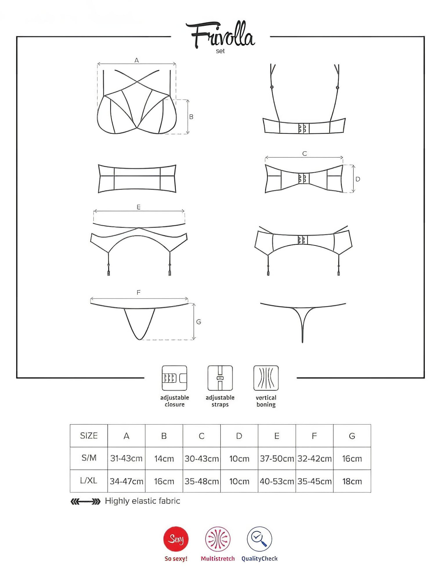 Obsessive Frivolla er et virkelig pikant, uimotståelig forførende og vakkert undertøysett, som omfavner kroppen med delikat blonder og lekne stropper.