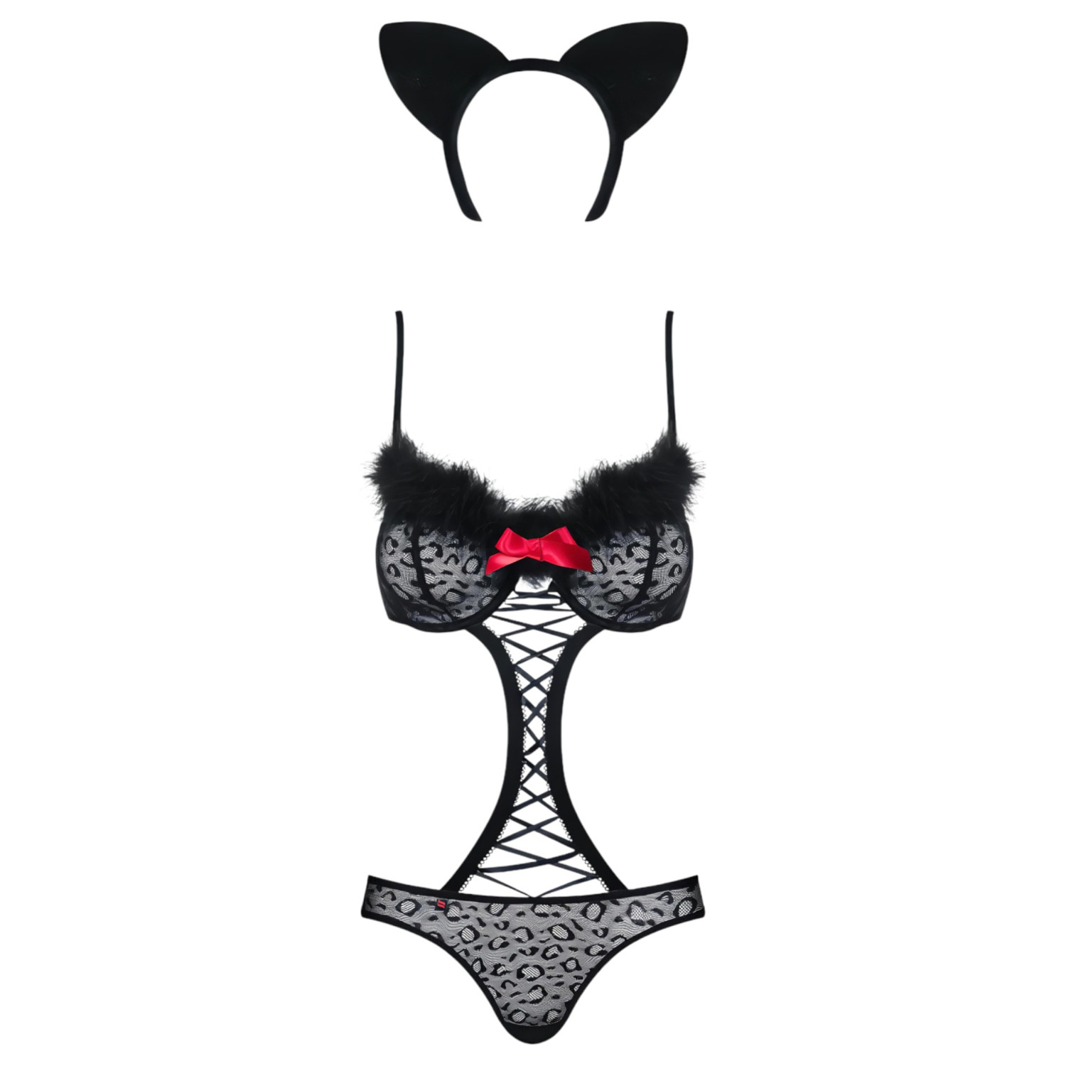 Obsessive Gepardina - Kattesett for Flørtende Dame (svart) - L/XL
