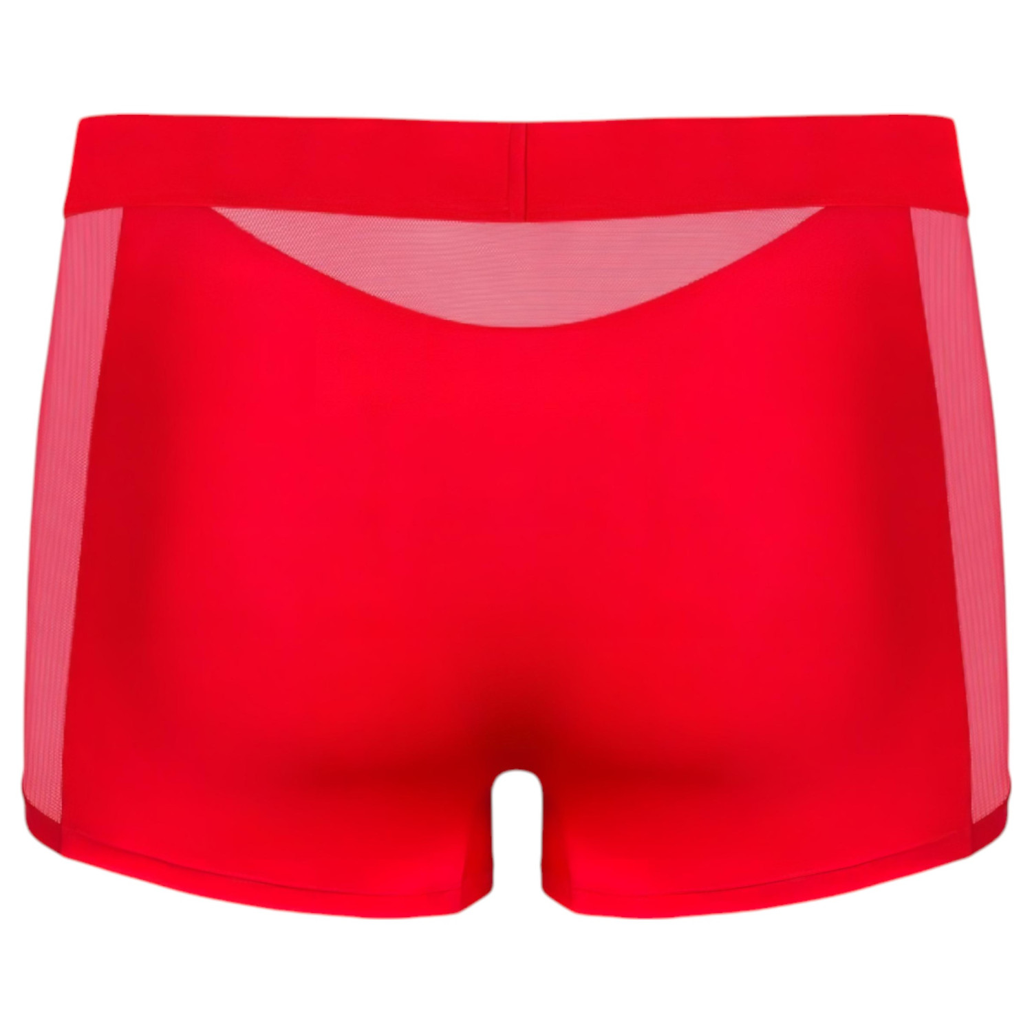 Obsessive Boldero herretruse er et stilig og komfortabelt undertøy i rød farge, med gjennomsiktige side- og bakpartier.