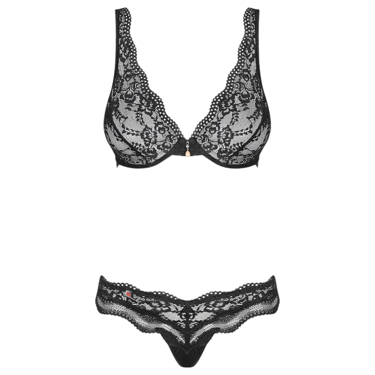Anmeldelser Obsessive Luvae - blomstrende, strassbelagt BH-sett (svart) - L/XL