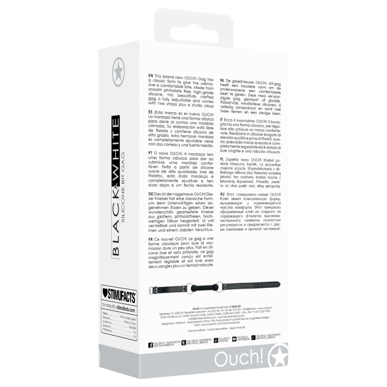 Ouch! bein-shaped munnbinding har en tidløs klassisk form som kan forsterke opplevelsen under submissive leker. Å bruke en munnbinding gir en spesiell følelse ved å begrense kommunikasjon og fremheve dynamikken av sårbarhet og kontroll. Denne modellen har en komfortabel biting, justerbare stropper og er laget av premium, hudvennlige materialer, noe som gjør den til et ideelt valg for både nybegynnere og erfarne brukere.