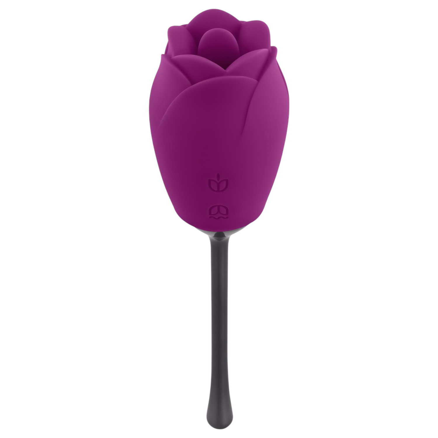 Denne sjarmerende, rosenformede vibratoren tilbyr dobbel stimulering: klitorisstimulering som etterligner tungebevegelser og en vibrerende stamme, så du får tilpasset nytelse etter hvert humør.