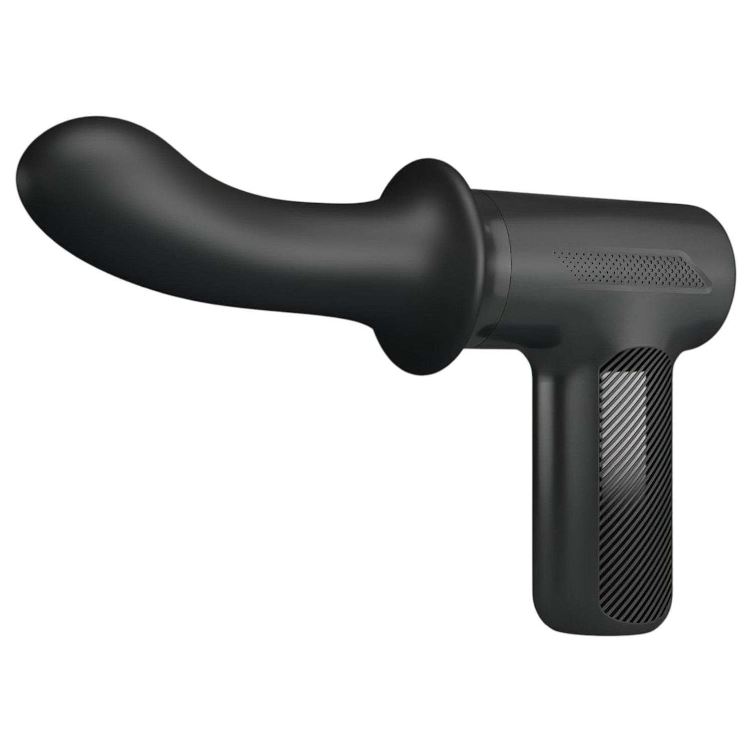 Koble til silikonehodet, og slå på enheten med knappen på håndtaket. Velg blant de 5 pulsfunksjonene, og bruk med glidemiddel for en mer behagelig opplevelse. Takket være pistolformen sikrer det stabil og presis kontroll mens det holdes i hånden.