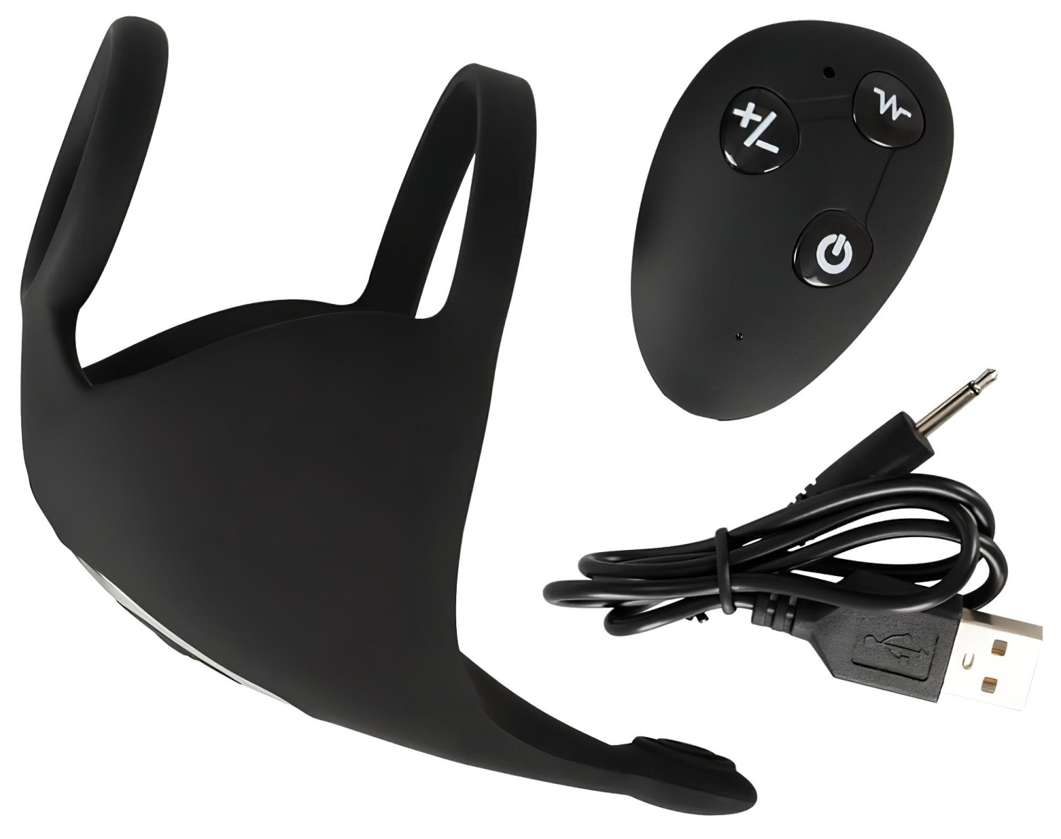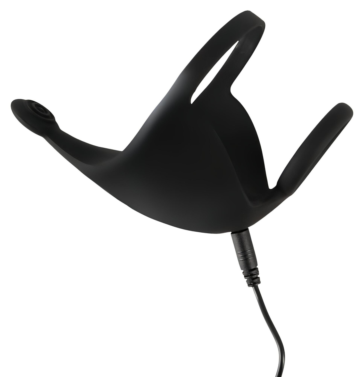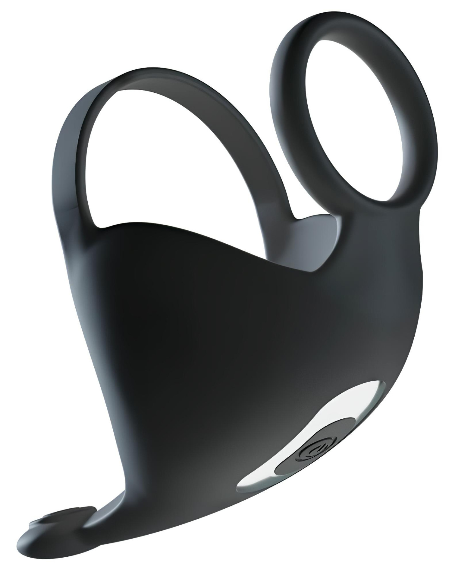 Rebel - oppladbar penis- og testikkelvibrator (svart)